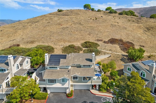Hillside living at its finest in San Luis Obispo’s coveted Banana Belt! This 3 bedroom, 3 bath home offers stunning city and hillside views from nearly every room. The bright, open floor plan features vaulted ceilings and a fireplace in the living room that flows seamlessly into the dining area and spacious kitchen, complete with recessed lighting, decorative fixtures, and fresh paint. The lower-level bedroom with French doors provides flexible space for a home office, guest suite, or family room, with convenient access to a full hall bathroom. Both the living room and lower-level bedroom open to the wrap-around deck, perfect for enjoying the peaceful Terrace Hill backdrop. Upstairs, the two bedrooms include the primary suite, featuring a vaulted ceiling, two closets, built-in storage, and a double vanity, while the second bedroom has easy access to the full hallway bath. Both rooms boast expansive views of the city and open-space hillside. Laundry is conveniently located upstairs. Set in a private, serene location, the home includes a spacious 2-car garage plus an additional designated parking space. Just minutes from downtown, enjoy easy access to shops, restaurants, parks, schools, hiking and biking trails, French Hospital, and a direct walk or bike ride across the Jennifer Street Bridge. A rare opportunity to own a beautifully maintained home with exceptional views, combining privacy, comfort, and the very best of Central Coast living.