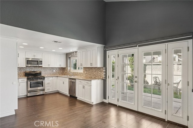 Welcome to this beautifully renovated 3 bedroom, 2.5 bathroom townhome in West Corona offering 1,475 sq. ft. of stylish living space. Completely updated within the past five years, this end-unit home combines modern finishes with exceptional privacy, no rear neighbors and a prime location near the community pool and park. Step inside to find new wood-look tile flooring, beautiful crown molding, and a spacious light and bright living room that flows seamlessly into the cozy family room which features vaulted ceilings, a fireplace, built in shelving, and opens to the updated kitchen with white cabinetry offering lots of storage space, tile backsplash, gorgeous countertops, and stainless steel appliances! There is also a formal dining room - great for hosting! All 3 bedrooms are located upstairs. The spacious primary suite features a large walk-in closet and a refreshed en suite bathroom. Two additional bedrooms provide flexibility for family, guests, or a home office. Enjoy the convenience of a direct-access 2-car garage, a private sidewalk entrance, and a backyard/patio area perfect for relaxing or entertaining. With easy access to the 91 freeway, just one exit from the 71, and minutes to the 241 and Orange County, this home offers both comfort and connectivity! Don’t miss the opportunity to own one of the most appealing units in the community. Move-in ready, thoughtfully upgraded, and ideally located, act fast!