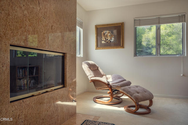 Secluded in the heart of Brentwood, this Art Deco Modern-style home was extensively remodeled & enlarged in the early 90's, features 4 or 5 bedrooms and 3.5 bathrooms. It offers spacious living areas filled with natural light, combining ample windows while maintaining privacy. As you enter, the home unfolds with high ceilings, prominent lines, a charming balcony, and a glimpse of the backyard. Each room is generously sized, with the living room showcasing lofty ceilings, plenty of windows, stylish design, and a dual-sided fireplace shared with the dining area. The dining space is enhanced by ambient lighting, a stunning chandelier, and a beautiful staircase with a balcony. From there, you flow into the kitchen and family room, which leads to the backyard. The large kitchen offers granite countertops, dual sinks, a spacious island, a breakfast bar, and a walk-in pantry. The cozy family room is an ideal spot to relax and take in the yard. The backyard boasts lush plants, ample space for entertaining, and with the addition of a lawn, it will complete the setting. Upstairs, an elegant stairway and landing overlook the lower level to three bedrooms and an office. All bedrooms are spacious and well-separated. The primary suite features high ceilings, a walk-in closet, a fireplace, and a large bathroom. Upstairs also features two more bedrooms and an office/5th bedroom, which includes a fireplace and a great view of the neighborhood. In addition, the home offers solar panels, a backup battery, and an electric car charger.