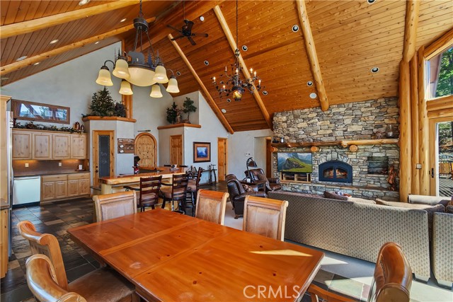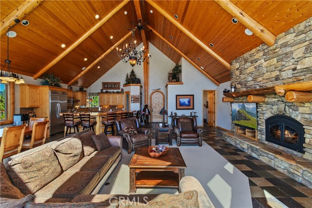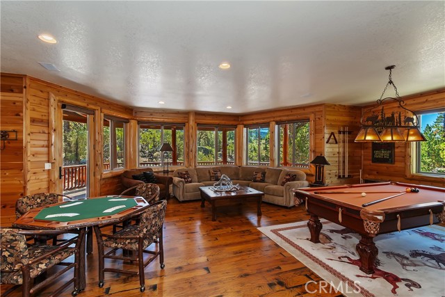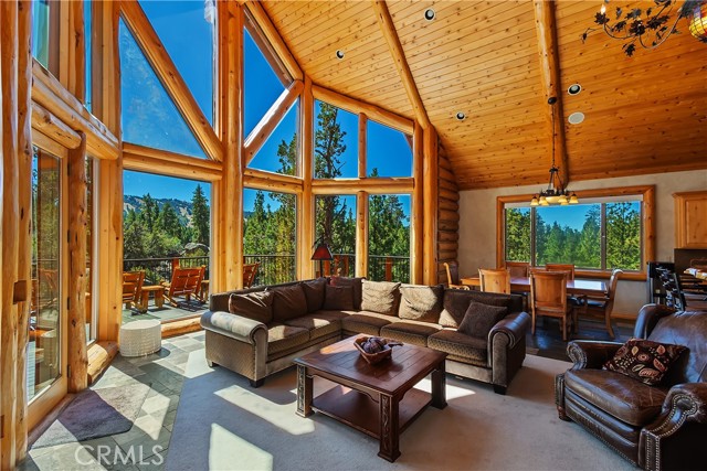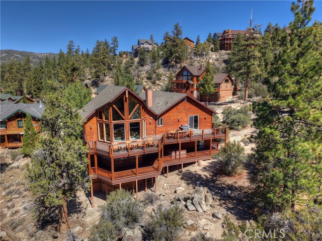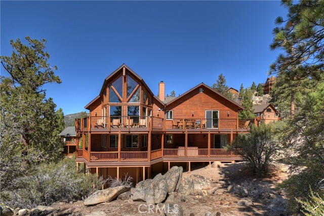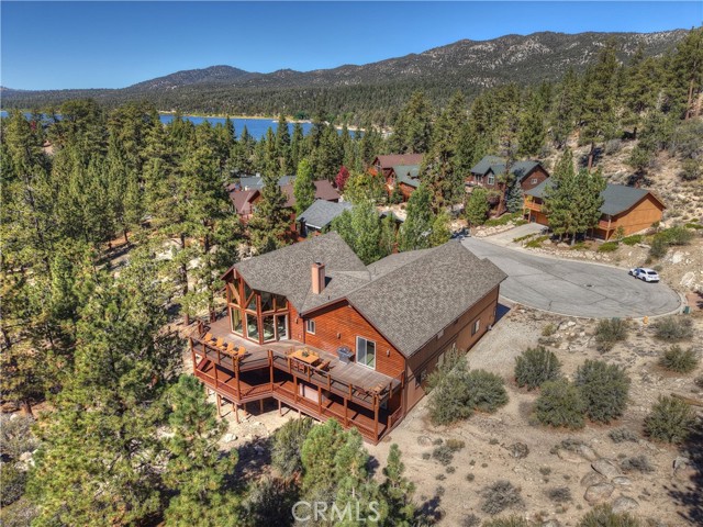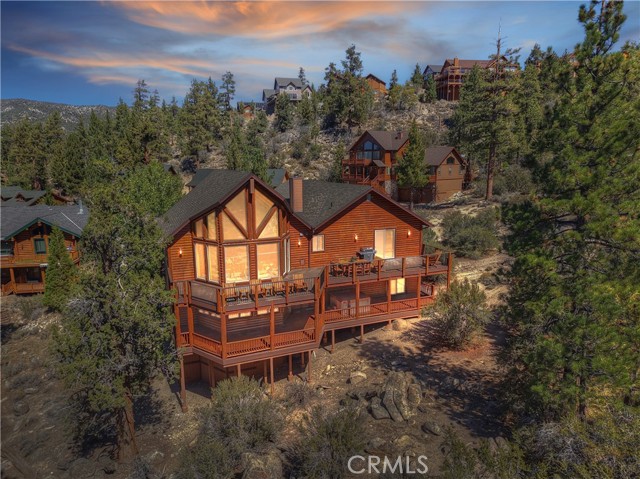 An elegant mountain retreat with unmatched views ~ Welcome to your Big Bear sanctuary, a five-bedroom masterpiece built in 2004, perfectly positioned on a peaceful cul-de-sac in the highly sought-after Castle Glen Estates, one of the most desirable neighborhoods in all of Big Bear ~ Designed with both relaxation and adventure in mind, this home offers the ultimate blend of comfort, luxury, and nature ~ Inside, soaring floor-to-ceiling windows invite natural light and frame breathtaking views of the surrounding forest and ski slopes, while slate flooring adds timeless sophistication to the open-concept design ~ Expansive living spaces and an enormous game room filled with pure fun, create the perfect atmosphere for entertaining, while a private hot tub offers the ultimate retreat after a day of adventure ~ You can’t miss the oversized four car garage with room to store all your mountain toys ~ Out back, the property opens to private acreage with beautiful viewa ~ From your southwest-facing deck, you’ll enjoy golden sunsets, panoramic forest and ski-slope views, and dazzling night skies filled with shooting stars ~ Towering pines and dramatic boulders complete the serene mountain backdrop, all while being just minutes from Big Bear’s activities ~ For summer fun, the nearest marina is only a two-minute drive making boating, fishing, and lakeside relaxation effortlessly accessible ~ Children can safely play and ride bikes along the quiet cul-de-sac while you savor peaceful evenings surrounded by nature ~ This exceptional retreat in Castle Glen Estates is more than a home it’s a lifestyle ~ Whether used as an investment, full-time residence or seasonal getaway, this home is waiting for you to make it your own ~ All furnishings can be included ~ Come enjoy Big Bear in luxury.