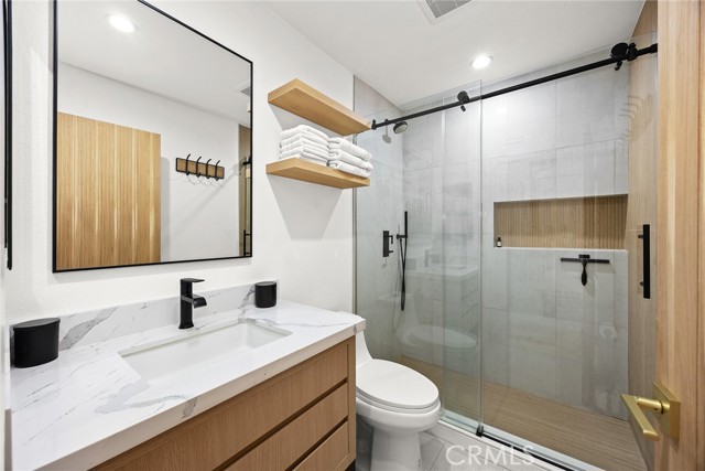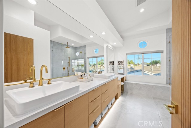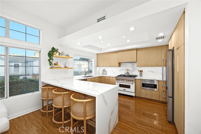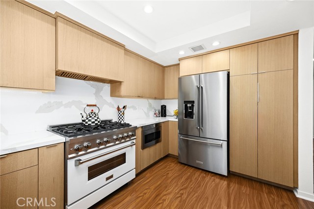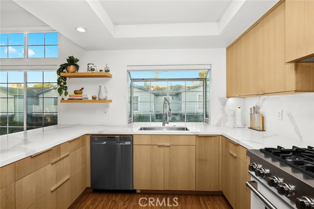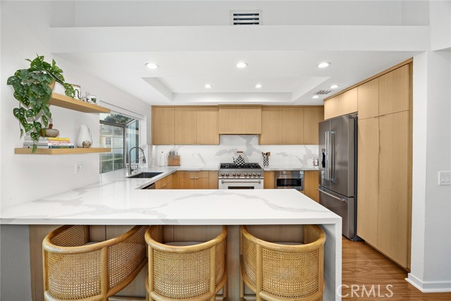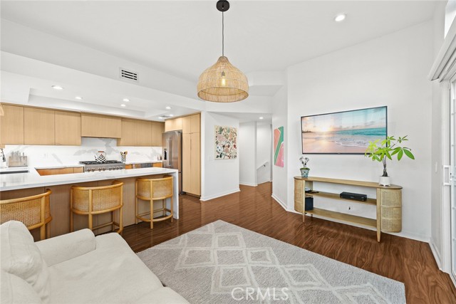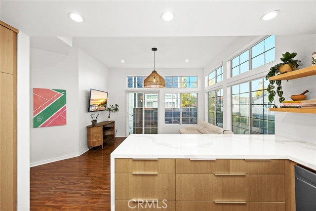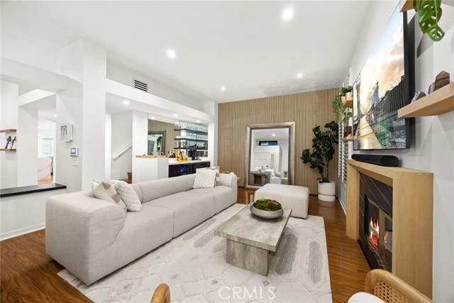 No Expense Spared in This Fully Renovated 3-Bedroom Townhome in Prime Location Beautifully upgraded 3-bed, 3-bath townhouse offering 2,003 sq ft of stylish living (plus approx. 300 sq ft lower level not included in recorded sq ft). Built in 1990 and fully renovated with luxury finishes, this rare end-unit shares only one common wall. Enter to soaring ceilings, a warm living room with fireplace, and an airy open feel. The main level is designed for entertaining with a wet bar, wine fridge, accent wall, designer powder room, and seamless flow between living, dining, family, and kitchen spaces. The gourmet kitchen features porcelain countertops, bar seating, custom cabinetry, hidden commercial-grade hood, and high-end stainless appliances, opening to a bright family room with oversized windows. Upstairs, the primary suite boasts vaulted ceilings, fireplace, his-and-hers walk-in closets, skylights, and a spa-inspired bath with heated floors. The lower level offers a private office/gym, laundry room with sink, and garage with Tesla charger and wall-to-wall cabinetry. Upgrades include custom window shades and all new windows. Prime location near Topanga Mall, The Village, Trader Joe’s, and top dining options.