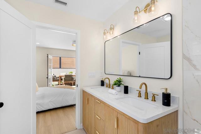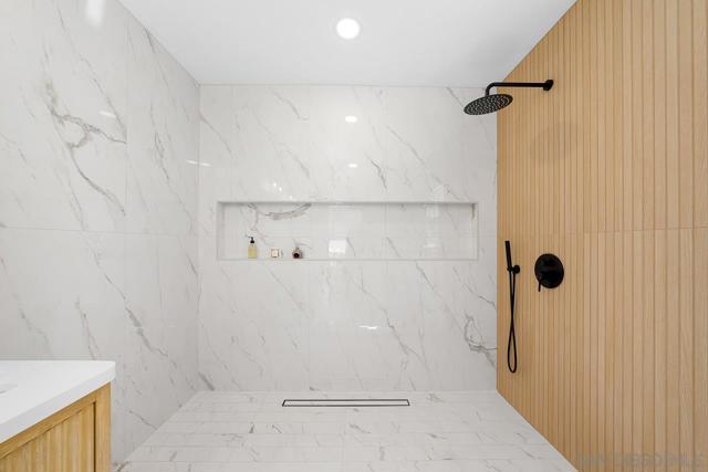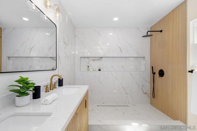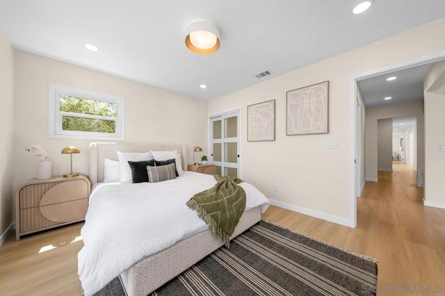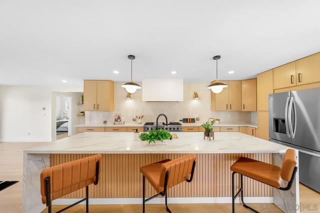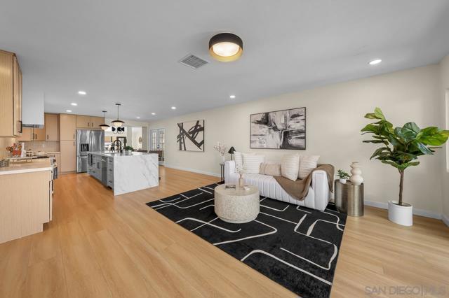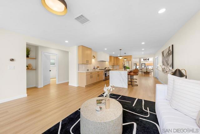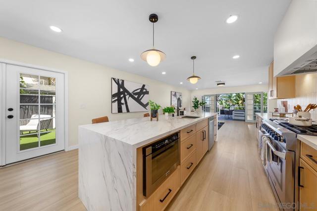 Sellers offering a rate buy down. Welcome to this stunning 4-bedroom, 2-bathroom single-family home located on a quiet, non-through street in one of Pacific Beach’s most desirable neighborhoods. Offering approximately 2,660 sq ft of thoughtfully designed living space on a 6,300 sq ft lot, this property seamlessly blends modern upgrades with coastal charm. Step inside to soaring vaulted ceilings, two spacious living areas, and high-end finishes throughout. The gourmet kitchen features Calacatta countertops, upgraded appliances, and plenty of storage. The bathrooms are spa-inspired, including a deep soaking tub and contemporary design elements. Entertain effortlessly with three separate outdoor patio areas, a fully fenced yard with real grass, and a backyard kitchen complete with built-in BBQ and pizza oven. Enjoy peekaboo ocean views from the front deck and the comfort of all-new systems including a new roof, plumbing, electrical, and central AC. Additional features include an attached garage, ample parking, and easy access to local beaches, restaurants, shopping, and top-rated schools. This is one of the only fully upgraded homes in Pacific Beach priced under $1,000 per square foot — an exceptional value for coastal living.