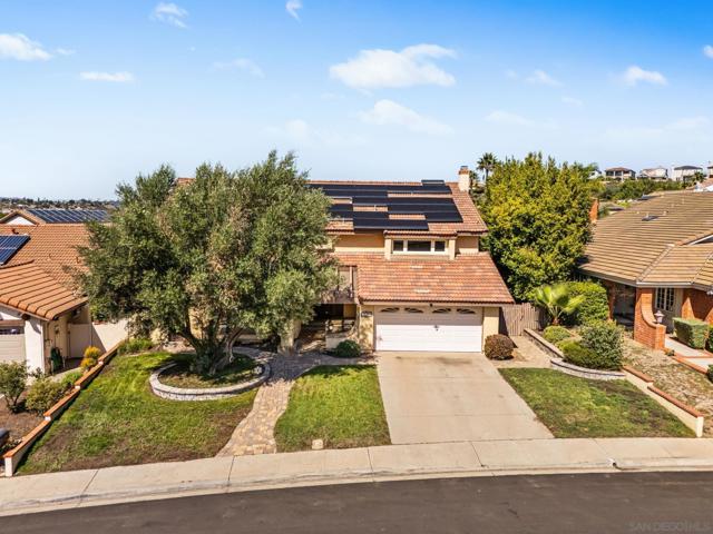 Welcome to this beautifully upgraded home in the highly desirable Montelena community of Rancho Bernardo. Featuring owned solar and two cozy fireplaces, this residence is filled with thoughtful details and modern comforts. The chef’s kitchen is a true centerpiece, boasting double ovens, stainless steel appliances, granite countertops, crisp white cabinetry, a cooktop, and a spacious island. Soaring 20-foot ceilings enhance the open feel, while multiple bonus spaces add versatility—including a second-floor loft and a ground-floor bonus room complete with a kitchenette and custom wine cellar. For movie nights at home, enjoy a built-in theater experience with a projector and custom-made screen in the living room. The large primary suite offers vaulted ceilings, three closets, and a spa-like en-suite bath with a Jacuzzi tub. Additional highlights include spacious secondary bedrooms and a convenient main-floor bedroom and bath, perfect for guests or multigenerational living. Step outside to an entertainer’s dream backyard, complete with a built-in fire pit, pergola, pavers, and turf for low-maintenance beauty. Nestled within the award-winning Poway Unified School District and close to shopping, dining, golf courses, Lake Hodges, and scenic trails, this home truly has it all.