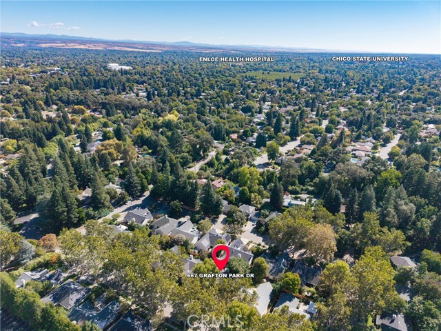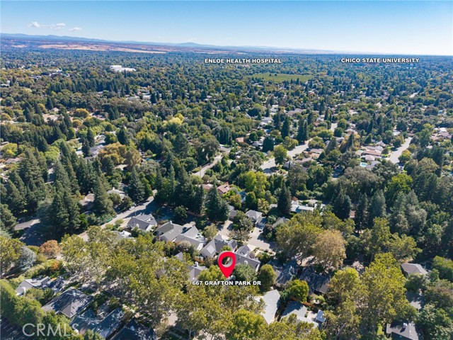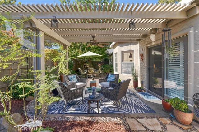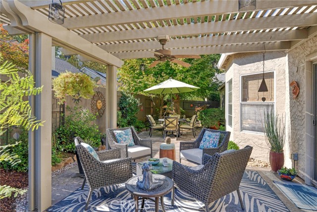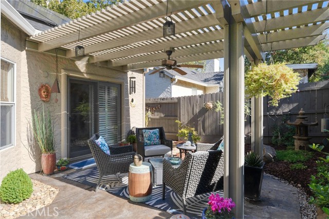 Tucked away on a picturesque tree-lined street in Chico, this delightful three-bedroom, two-bathroom home combines storybook charm with modern updates. Inside, you’ll find soaring ceilings in the living room that create a bright, open feel, complemented by a cozy fireplace. The kitchen is truly impressive with beautiful quartz countertops, a designer backsplash, crisp white cabinetry, and plenty of space for cooking and entertaining. Both bathrooms have been thoughtfully remodeled, and the spacious primary suite features a gorgeous en-suite with a walk-in shower. Fresh paint, newer flooring, newer fencing, and countless designer touches bring a stunning, move-in-ready appeal to every corner of this home. Energy efficiency is also a plus, with solar and a whole house fan. Step outside to your private backyard retreat, complete with beautiful landscaping and a charming pergola—perfect for entertaining or enjoying quiet evenings at home. The attached two-car garage provides ample storage, rounding out this wonderful property. Located in one of Chico’s most sought-after neighborhoods, this home offers the perfect blend of charm, style, and comfort.
