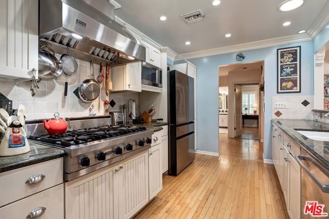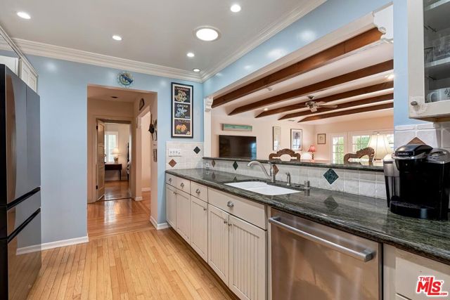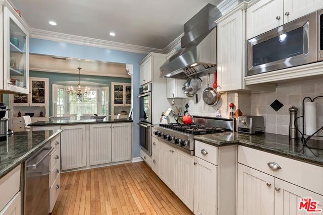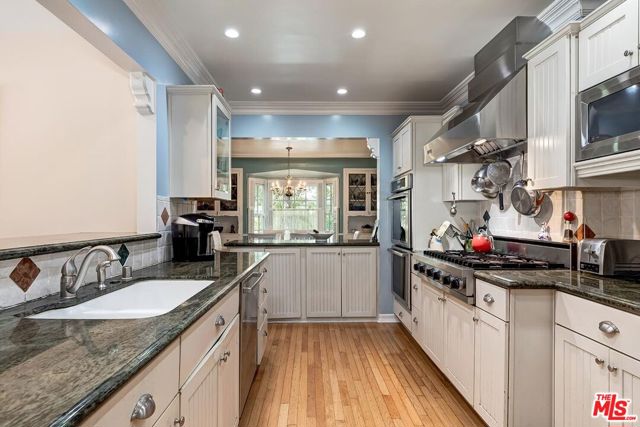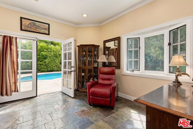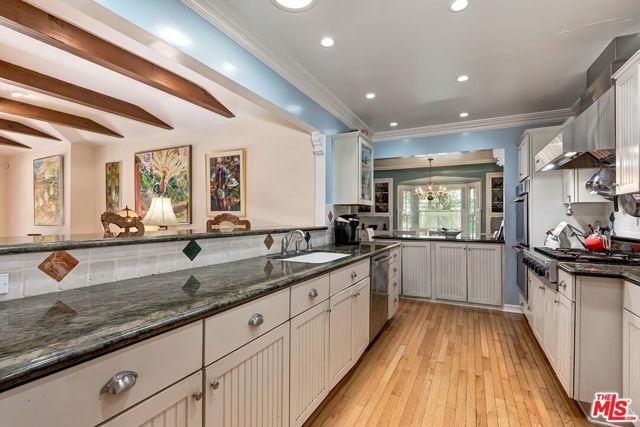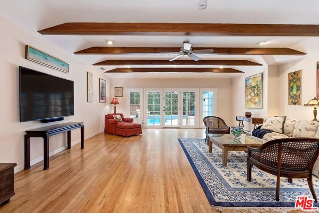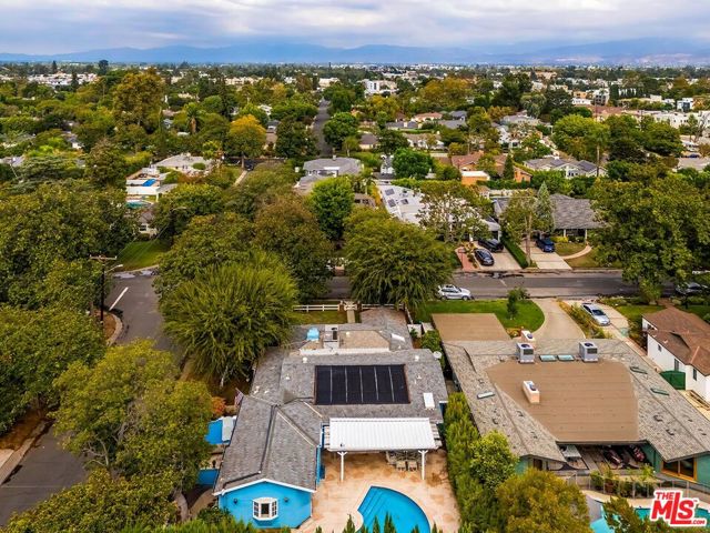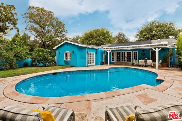 Fall in love with this rare 1936 Valley Village classic traditional with pool on an oversized corner lot. All the original elements you dream about blended with tasteful updates that honor the integrity of its classic style. Step inside to a quintessential living room with a bay window and original fireplace. The dining room flows into an upgraded kitchen with expansive stone counters and stainless-steel appliances, including Viking stove top, Thermador double ovens, Bosch dishwasher. The enormous family room, with its beamed ceilings, feels like the heart of the home - opening through French doors to the backyard with pool, grassy yard and an office with slate floors, bay window and poolside views through French doors. The primary suite features a walk-in closet, spa-like bath with dual sinks, separate shower, soaking tub, and a private French door straight out to the pool. Additional spacious bedroom and bath, a bonus room, and flexible spaces make this home as functional as it is charming. Located in the coveted neighborhood of Valley Village, you'll love the neighborhood's tree-lined streets, friendly vibe, and top-rated schools, including Colfax Charter Elementary. Adjacent to Studio City, Sherman Oaks, Toluca Lake, and North Hollywood with all the shops, cafes, and dining at your fingertips. Savor the tranquility of this charming community, with easy access to downtown Los Angeles, Santa Monica, or a quick trip over Laurel Canyon to West Hollywood, and just minutes from Burbank Airport.