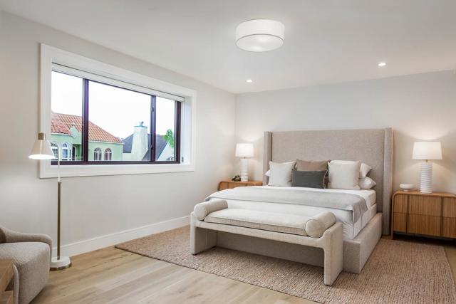 Located just off St. Francis Wood and Balboa Terrace, this detached 4BD/3BA residence blends modern design with timeless craftsmanship. Thoughtfully built for comfort and efficiency, it features radiant heat, solar panels, a Tesla charger with Powerwall, and Marvin windows that fill the home with natural light. White oak floors extend through an open layout with 10+ ft ceilings. The living room is anchored by a gas fireplace framed in natural Carrara stone. The chefs kitchen impresses with a BlueStar range, Vent-A-Hood, Sub-Zero refrigerator, designer cabinetry, and Vadara Calacatta stone surfaces. Spa-like bathrooms include Waterworks fixtures, rain showers, and a relaxing dry sauna. Two bedrooms are conveniently located on the main level, including one ensuite. The lower level offers a spacious double-sized suite with 84 ceilings opening to the backyard terrace, plus another large bedroom overlooking the front yard. A brick-lined terrace and manicured turf lawn frame a peaceful outdoor escape, while a formal entry and two-car driveway enhance both elegance and ease.