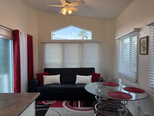 Welcome to Family Friendly Sky Valley Resort! Beautiful 2017 Park Model that offers 1 Bedroom, 1 Bathroom and is being offered Turnkey Furnished!This home is super clean and well maintained. Nice Kitchen with lots of cabinets for storage. The Bathroom has a nice large walk in shower. The Outside Living Area has a Alumawood Pergola and artificial turf for easy, low landscape maintenance. Beautiful outdoor patio furniture with sun umbrellas, Citrus trees and new vinyl fencing. Great entertainment area to have friends over for a BBQ and enjoy the warm Desert evenings. . Sky Valley Resort offers many Great amenities including 13 Hot Mineral Pools & Spa's, Fitness Center, Sauna, Tennis Courts, Pickle Ball Courts, Cafe, Chapel, & a Doggie Park. As a resident you can Golf at the Sister Park, Caliente Springs, which is only a couple miles down the road. This Resort is a Gated, Family Park. The Property has Space Rent and is not on Leased or Fee land. The Space Rent is $820./month Short Term Rentals are Allowed with Restrictions.This Property is DMV Registered and doesn't have Property Taxes. You can get Financing on Park Models. Come out and Explore the Desert Lifestyle! Palm Springs is just a short 15-20 minute drive