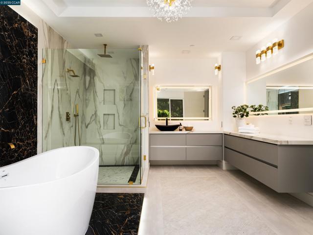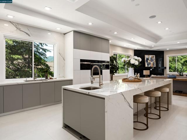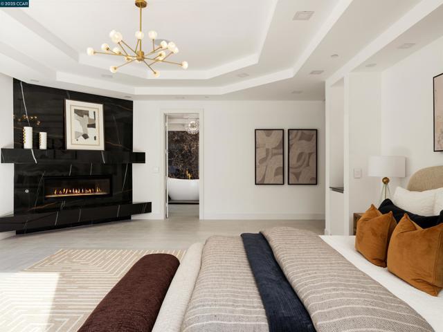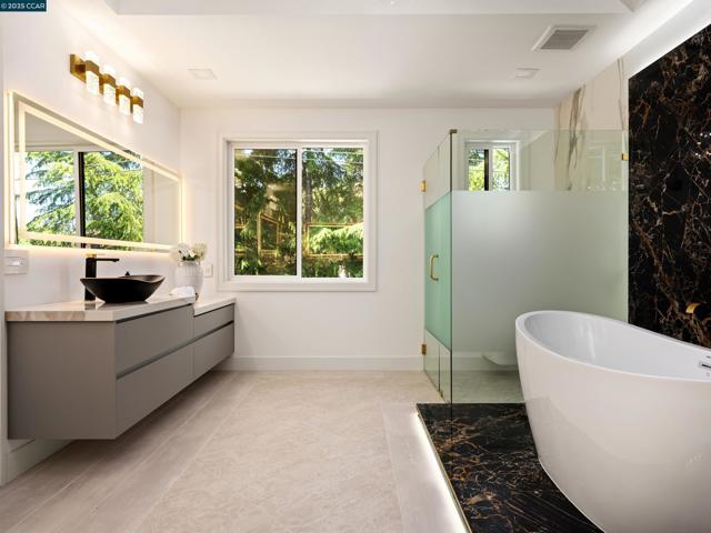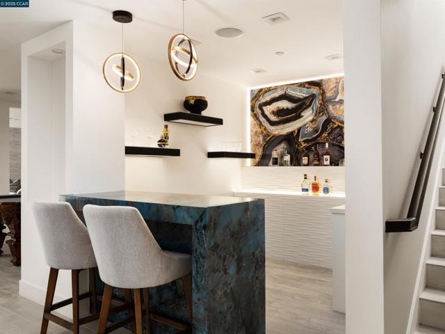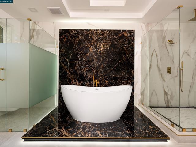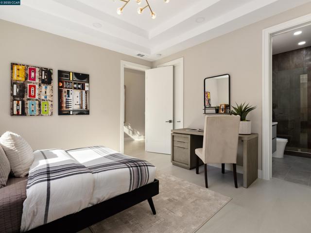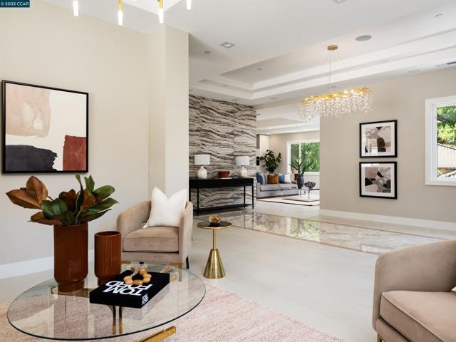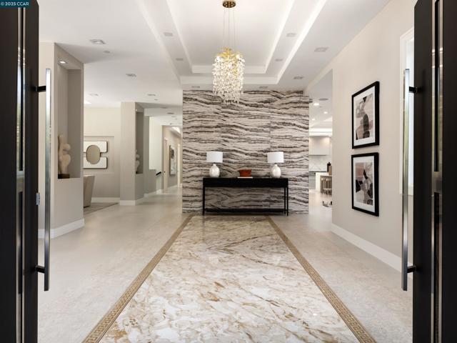 Masterfully crafted, modern new construction on Danville’s El Pintado loop. Unmatched sophistication. Light-drenched open concept living. Meticulous attn to detail. 1.13 +/-acres. Dual gated entries. 9960+/-SF of living space. 7870+/-SF 2-level main home. Italian & Versace porcelain tile flrs, accent walls, frpl surrounds. Soaring ceilings. LED lighting. Skylights. Pella dual-pane windows. 5 en-suite bdrms and 7.5 bths. 1000+/-SF detached 2 bd/2 bth guest house. Formal living & dining rms. Chef’s kitchen w/12-ft long island/bkfst bar, Miele appls. Porcelain slab counters/bksplsh. Sleek cabinetry. Butler’s pantry w/sink, frig, Bosch dw. Family rm w/frpl. Bonus rm w/walk-around wet bar, 1000+ bottle wine cellar. Office w/pvt entry. Flex-use rm ideal for gym/yoga studio. Main level primary retreat w/frp, dual walk-in closets. En suite w/free standing bathtub, shwr w/multiple shwrhds, Dual vanities w/vessel sinks, brushed gold fixtures. Guest house w/full kitchen. 1090+/-SF pool house w/wet bar, built-in grill, gas frpl. Outdr amenities: Saltwater pool, spa, wtrfalls, fire pits, bocce ball ct, potential tennis ct. 2 2-car garages. 2 EV chargers. Custom ironwork. RV/boat parking. 4 HVAC. 2 tankless, 2 tank wtr htrs. 340+/-SF storage rm. 1 mi to downtown Danville. Easy freeway access.