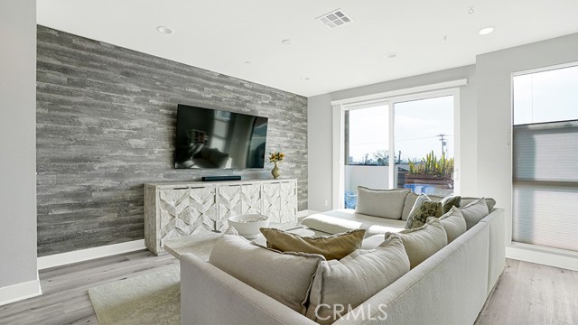Introducing 1650 Topanga Avenue, a stylish residence perfectly situated at the edge of the sought-after 17 West community in Costa Mesa. With four levels of thoughtfully curated living space, this home is one of the rare offerings within the development featuring four bedrooms and four-and-a-half bathrooms, creating exceptional flexibility for an owner-occupant or investor alike. The entry-level offers a private bedroom with an en suite bath, ideal for guests, or a home office. On the second floor, dramatic 18-foot ceilings define the dining area, where natural light pours through oversized windows, highlighting a striking designer chandelier. The open-concept layout connects the living and dining spaces to an upgraded kitchen outfitted with quartz countertops, stainless steel appliances, and an oversized island that invites both casual meals and lively entertaining. Custom window treatments, upgraded vinyl flooring, and modern designer finishes create a sense of effortless style throughout. The third level is home to a well-appointed primary suite with a spa-like bath and ample closet space, along with an additional guest bedroom with its own en suite bathroom. The fourth floor offers a flexible retreat featuring yet another en suite bedroom and a bonus space perfect for a home gym, office, or media room. From here, step outside to a large rooftop deck with views across Costa Mesa towards the mountains in the distance as well as south facing sight lines towards the ocean. Outdoor living spans across three distinct levels of the home, offering multiple options to relax, entertain, or unwind in the fresh coastal air. Every finish and feature has been selected with quality and efficiency in mind, including spray foam insulation, dual-pane low-E windows, a tankless water heater, and a high-efficiency HVAC system. Interior touches like quartz surfaces, designer lighting, tile accents, and custom built-ins elevate the home beyond the expected. Residents of 17 West enjoy a vibrant and social environment with amenities such as community barbecues, a bocce ball court, dog run, playground, and fire pits. Located just minutes from the beach and surrounded by some of the best shopping, dining, and recreation Orange County has to offer, 1650 Topanga Avenue is a compelling opportunity to own a standout home that blends turnkey luxury, investment potential, and an unbeatable lifestyle location.