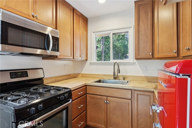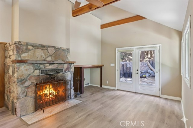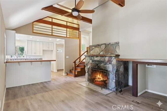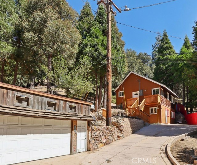 Private Mountain Retreat with ADU & Oversized Lot! Tucked away on a quiet cul-de-sac in Crestline, this charming mountain home blends rustic character with modern comforts — plus the bonus of a full apartment-style ADU. The main home features a welcoming living room anchored by a wood-burning fireplace, a cozy hideaway loft overlooking the great room, and a well-appointed kitchen with plenty of space for gatherings. A full bath serves the main living space. The detached ADU includes its own kitchen, living area, bedroom, and full bath — ideal for guests, extended family, or generating rental income. Set on a rare oversized lot, the property offers exceptional privacy and outdoor living. The backyard has been thoughtfully hardscaped with retaining walls and a large secluded patio, perfect for entertaining, stargazing, or enjoying quiet mornings in nature. A detached 2-car garage — a rare find in this area — provides secure parking, storage, or potential workshop space. Located close to Lake Gregory, Crestline Village, and hiking trails, this property offers the perfect balance of escape and convenience. Don’t miss this unique opportunity to own a mountain retreat with income potential and space that’s truly hard to find.