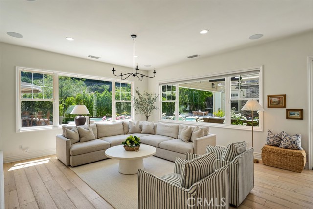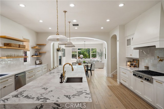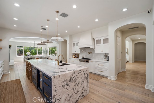 Luxury Living in Robinson Ranch, Designer Upgrades Throughout. Step into sophistication with this beautifully upgraded Robinson Ranch residence, offering 4 spacious bedrooms, 4.5 bathrooms, and a thoughtfully designed open floor plan perfect for modern living. From the moment you enter, rich hardwood flooring and an abundance of natural light set the tone for timeless elegance. The newly reimagined custom chef’s kitchen is the true heart of the home—featuring designer tile, dual sinks, a double oven, premium appliances, pot filler, upgraded faucets, chic cabinet hardware, a premium water filtration system, and stylish open wooden shelving. A large center island flows seamlessly into the inviting family room, creating the perfect space for both everyday gatherings and special occasions. Enjoy a formal dining room, a warm and welcoming living room, an oversized laundry room, and exceptional pantry storage. Upstairs, the layout has been designed with both privacy and function in mind, with a dedicated office on one end and a serene library on the other. Your entertainer’s backyard is a private Southern California retreat, featuring a sparkling saltwater pool and spa with new tile, coping, and a modern phone operated control system. Host unforgettable get-togethers with a completely remodeled built-in BBQ area, outdoor dining space, and upgraded pool heater for year-round enjoyment. Additional enhancements include: Stylish new light fixtures throughout, Professionally deep-cleaned AC vents and furnaces for optimal air quality, New, phone-operated sprinkler system for effortless lawn care. This home combines high-end design with thoughtful upgrades inside and out, offering both comfort and elegance in one of Sand Canyon's most desirable communities. *Owner Occupied/Please do not disturb homeowner*