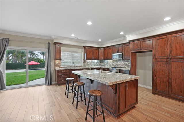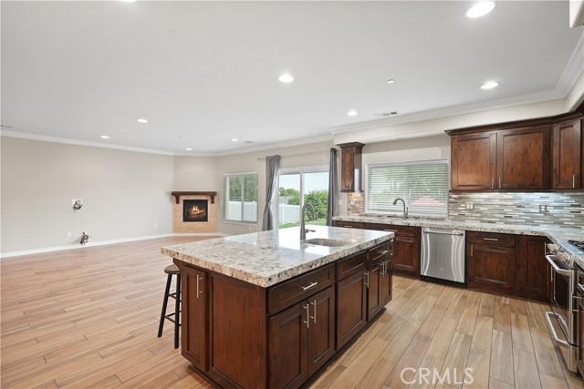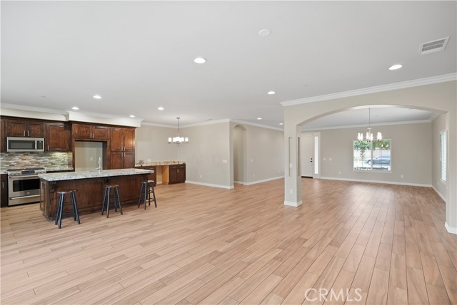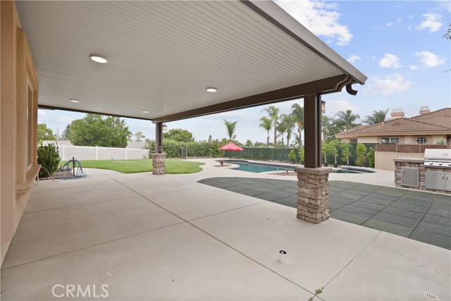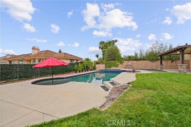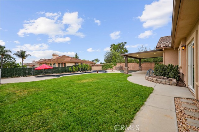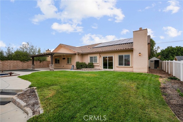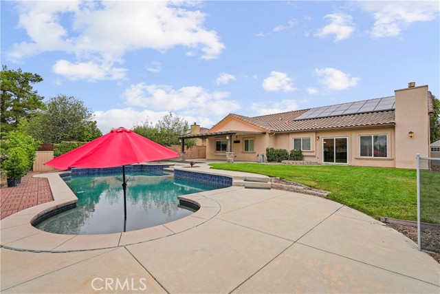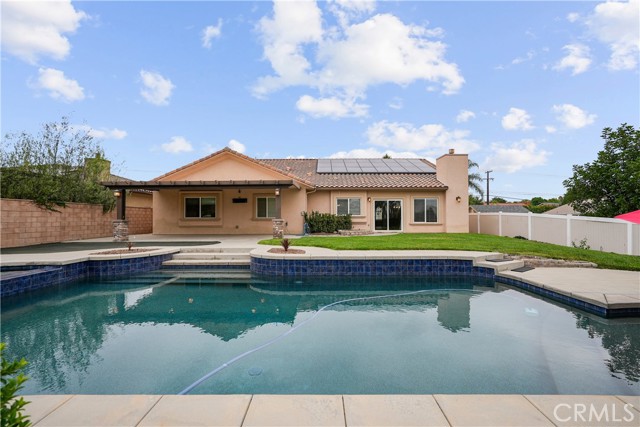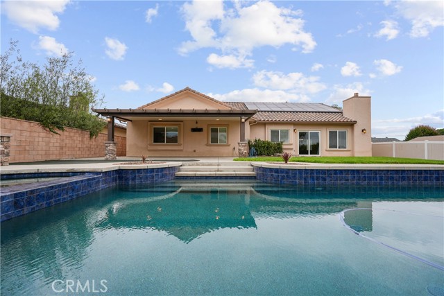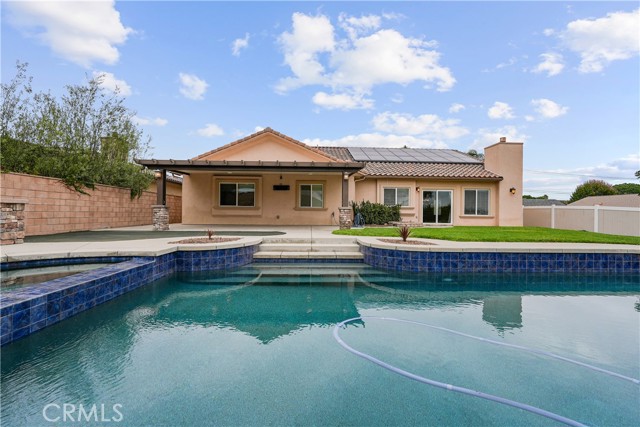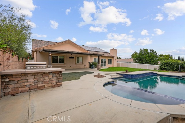 This beautiful single-story home offers 4 bedrooms, 3 bathrooms, and 2,631 square feet of comfortable living space. Built in 2014, it features an open floor plan filled with natural light, creating a bright and welcoming atmosphere throughout the living, dining, and family areas. At the heart of the home, the spacious kitchen is designed for connection and convenience. A large center island, extended counter space, gas range, and abundant cabinetry make it both functional and inviting. The kitchen flows seamlessly into the family room and opens directly to the backyard—ideal for everyday living and entertaining. The primary suite provides a private retreat, complete with a walk-in closet and a spa-like bathroom featuring dual sinks, a soaking tub, and a step-in shower. The additional bedrooms are generously sized, and the oversized laundry room offers extra storage and functionality. Step outside and enjoy a backyard designed for relaxation and fun. A sparkling pool with spa, built-in BBQ, and landscaped grounds make it a perfect place to unwind or host gatherings. Additional highlights include seller owned solar, energy-efficient windows, insulated interior walls, and a finished 3-car garage. On an approximately 11,000 square foot lot, this home offers the perfect balance of space, style, and comfort—inside and out.