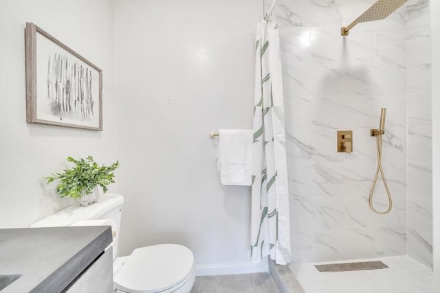 Head-to-toe remodeled SFR in prime Union City near Award-Winning Delaine Eastin Elementary school district! Fully renovated with city permits by licensed contractors, this home blends modern style with comfort. Features NEW interior & exterior paint, NEW waterproof flooring, vaulted ceiling in the living room with abundant natural light, cozy NEW fireplace, and LED recessed lighting. The upgraded kitchen boasts European-style cabinets, quartz counters, island seating, and NEW stainless steel appliances, opening to a separate family room. Functional floor plan includes formal dining, pantry, laundry room, and convenient downstairs 1 bed/1 bath ideal for family visits. Upstairs offers a nice master suite with dual sink vanity plus an office space loft perfect for work or study. All bathrooms feature designer finishes. Major updates include new furnace, thermostat, stairs, outlets/switches, closet doors, and finished garage. Expansive yard with mature trees, and landscaping. Prime location with easy access to I-880/92, BART, Union Landing, Coyote Hills Trails, and Pioneer Park. Friendly neighbors complete this ideal home - don't miss out!