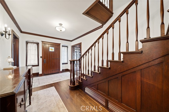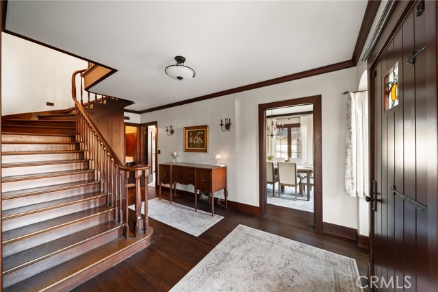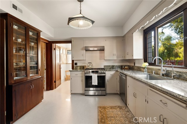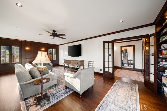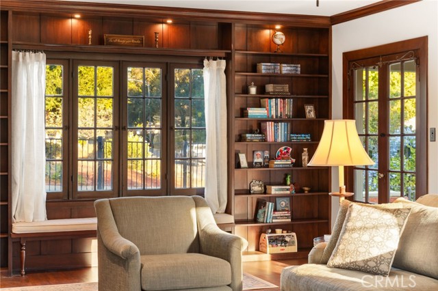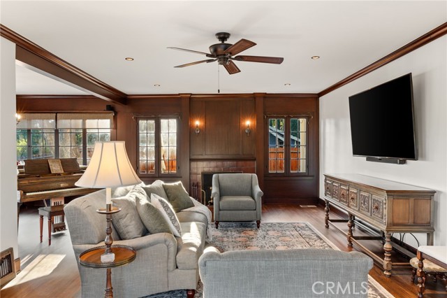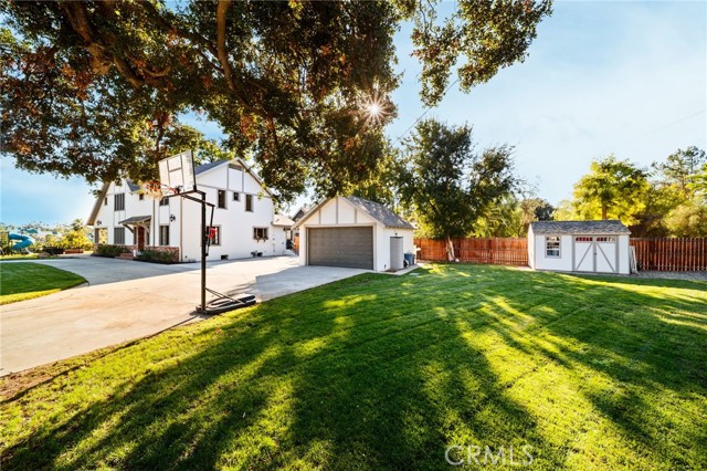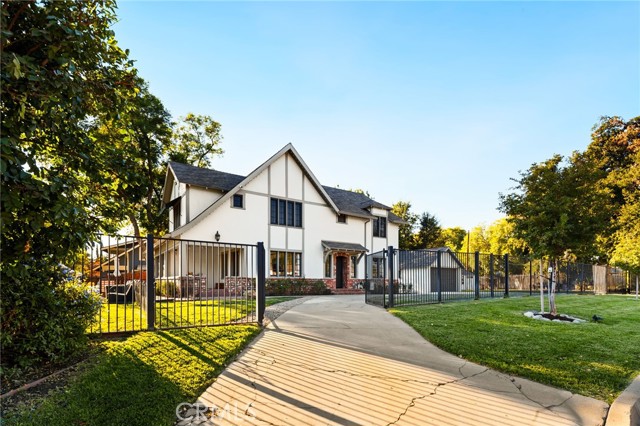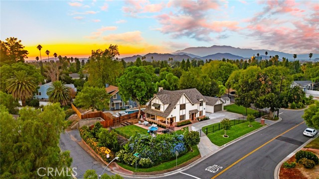 Carlton Place – Once home to Riverside scholar Robert P. Anderson, this enchanting Tudor Revival residence was built in 1925 at the height of the Roaring Twenties. Designed with distinction and crafted with luxury in mind, the home commands a subtle, elevated corner lot with sweeping views of the famed Victoria Club. The landscaped grounds are a true delight, with graceful white crape myrtles, Chinese elms, and a stately jacaranda tree. Along the hillside, vibrant yellow bougainvillea, blue plumbago, and lantana intermingle with classic white roses, creating year-round beauty. The quarter-acre lot is fully fenced, offering privacy with neighbors on only one side. As one of Riverside’s rare “through lots,” the property provides versatile space for guest parking, RV storage, an ADU, or even a pool. Inside, the home retains its timeless character while offering thoughtful updates for modern living. The floor plan reflects the purposeful design of the period—each space created with function, comfort, and charm. Recent renovations have been completed with a keen respect for the home’s heritage, blending original details with carefully chosen upgrades. Enhancements include: a newer roof, dual-zoned HVAC with heat pump, new plumbing and electrical systems, upgraded 200-amp panel with EV charging, water softener, newer water heater, and insulation throughout. The interiors feature refinished hardwood floors, restored architectural paneling, original windows and doors, tastefully remodeled bathrooms, and a beautifully updated kitchen. The primary suite boasts heated bathroom floors and a skylight with automated venting. Additional conveniences include reverse-osmosis water filtration, new plaster walls, fresh paint and wallpaper, a storage shed, landscaped grounds with automated irrigation, a spacious basement for storage, a newly rewired garage with sub-panel, and an automated entry gate for ease and security. Located within the sought-after Poly High School district, this distinguished home is more than a residence—it is a treasured piece of Riverside history, ready to be enjoyed and preserved by its next steward.