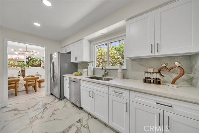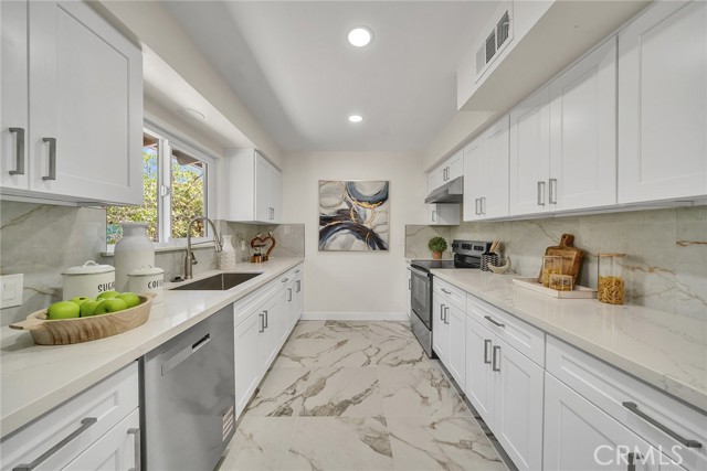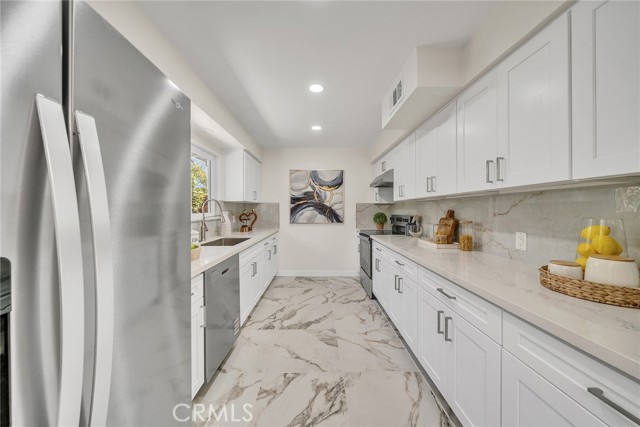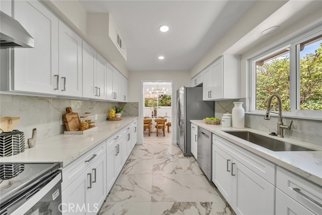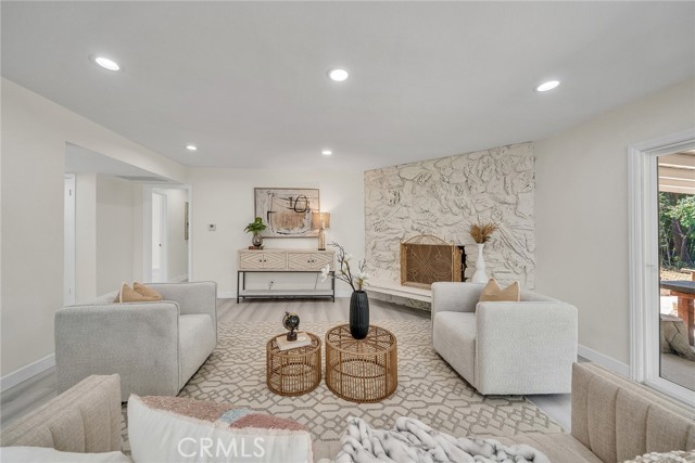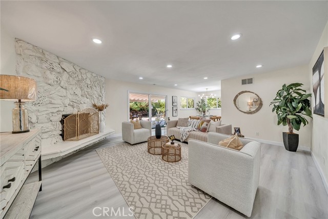 A 4 bedrooms 3 bathrooms single family house situated on a 13,153 square foot flat lot. The house is in a cul-de-sac and quiet neighborhood with only cul-de-sac traffic. From the street you see the front of the house with a huge parking area and the detached 2-car garage with its driveway and a courtyard. The house has just been completely renovated from floor to ceiling. New interior and exterior painting, new plumbing, new breaker box, new wiring, a brand new kitchen with all new appliances (refrigerator, dishwasher, stove, oven, windows, exhaust, counters, cabinets), new air conditioner, new heating unit, new water heater. A big backyard with a huge covered patio great for entertaining. There is a huge wood burning stone fireplace in the living room. Schedule your showing with the listing agent or come to the open house. Do not use Showing Time.