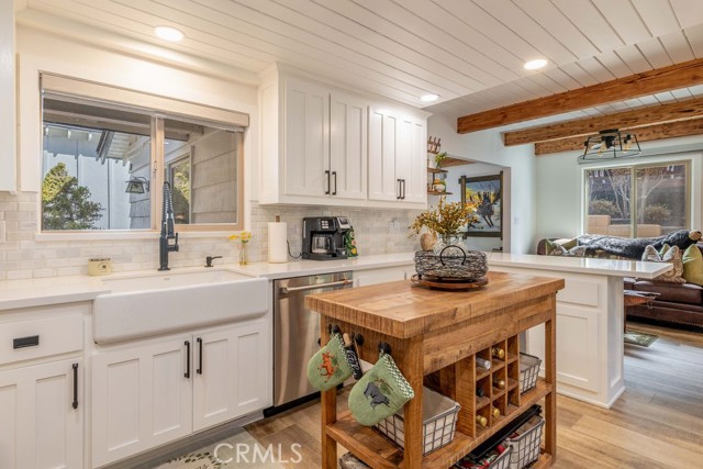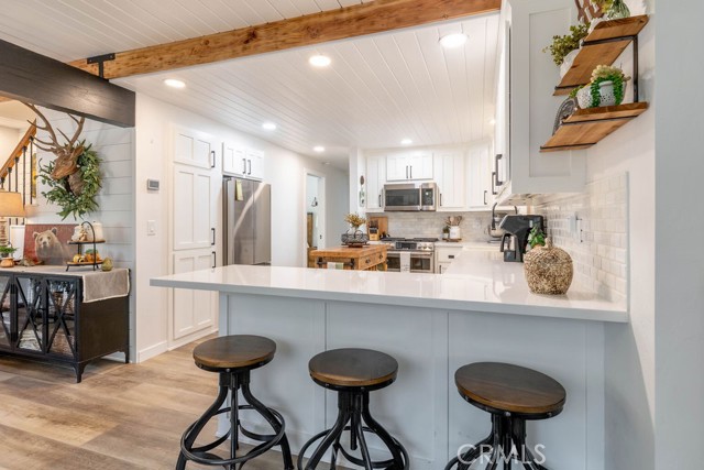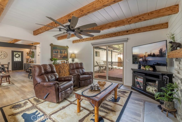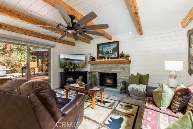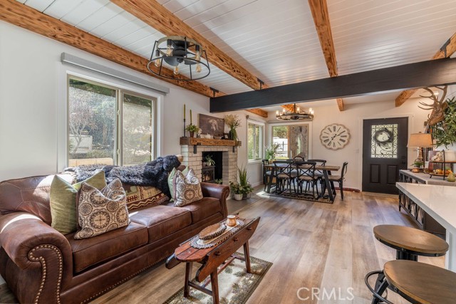 Welcome to this beautifully remodeled Sierra-style home, thoughtfully reimagined from top to bottom. Every detail has been carefully designed, featuring a brand-new kitchen, beautifully updated bathrooms, fresh paint and flooring throughout. The warm mountain ambiance shines with two cozy fireplaces and striking wood beamed ceilings, blending rustic charm with modern comfort. In addition to its style, this home offers peace of mind with functional upgrades throughout, including a new roof, all new windows, and custom window coverings. You'll also love the convenience of the spacious two car, drive through garage. Step outside to a well treed backyard area, perfect for entertaining, while a detached converted game room adds even more space to relax and enjoy with family and friends. Located in the highly desirable Fox Farm neighborhood, this home offers the perfect blend of tranquility and convenience - just minutes from the lake, Village and ski resorts. This property truly has it all - style, comfort, upgrades, and the ideal location for your mountain getaway or full-time residence.