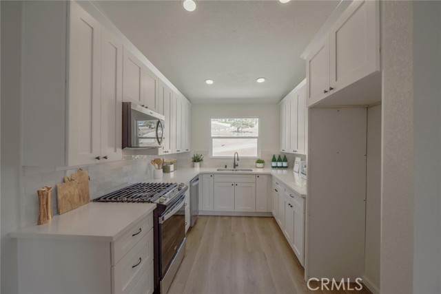 This home qualifies for the exclusive NAF Pathway Program, offering a reduced interest rate, no mortgage insurance, and up to $8,000 in buyer assistance—a rare chance to lock in major savings on a beautifully updated, move-in-ready property. Step inside to discover fresh interior and exterior paint, brand-new laminate flooring, plush bedroom carpeting, and tile bathrooms enhanced with modern recessed lighting. The fully renovated kitchen showcases all-new cabinetry, a stylish backsplash, updated faucet and garbage disposal, floating shelves, and brand-new stainless-steel appliances. Both bathrooms have been thoughtfully upgraded with new vanities, mirrors, fixtures, and lighting, while the primary suite boasts a custom walk-in shower. Additional highlights include new baseboards, closet doors, ceiling fans in every bedroom, and a striking fireplace surround in the living room. As a bonus, the property features a versatile basement/workshop area—ideal for storage, a home gym, creative studio, or potential ADU conversion. Outside, low-maintenance landscaping keeps the yard clean and easy to enjoy. This turnkey home truly checks all the boxes—don’t miss out on this rare opportunity!