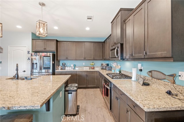 TWO HOMES UNDER ONE ROOF! Welcome to your dream Multi-Gen home in the Audie Murphy Ranch community of Menifee! Whether you're planning to move in with extended family or looking to generate additional monthly rental income, this rare and versatile home has it all. This beautifully designed residence features 5 spacious bedrooms, 4 full bathrooms, and a 3-car tandem garage, offering plenty of space for large families or those who love to entertain. One of the standout features is the private Multi-Gen Suite a rare find in this community and area for this price! It includes its own separate private entrance, 1-bedroom, full bathroom, laundry area, kitchenette, and even a private side yard. It’s perfect for in-laws, adult children, guests, or as a private rental unit. The main home also includes an additional main floor bedroom and full bath, ideal for guests, a home office, or added accessibility. Step into a bright and open floor plan featuring a modern kitchen, and dining spaces, and elegant finishes throughout. The backyard oasis includes a serene private SPA, covered aluminum Patio cover and scenic views from backyard, perfect for relaxing or entertaining. Upstairs, enjoy a spacious loft and a luxurious primary suite with bathroom and a generous walk-in closet. Every corner of this home is thoughtfully crafted to provide comfort, flexibility, and style. Located just steps away from the Audie Murphy Ranch Clubhouse, enjoy resort-style amenities: pools, spas, sports courts, playgrounds, walking trails, and regular community events. Conveniently located near the Menifee Town Center, you'll have quick access to shopping, dining, and entertainment. Commuters will appreciate the close proximity to the 215 and 15 freeways, offering an easy drive to Temecula, Murrieta, and even San Diego. Plus, you're just 20–25 minutes from the renowned Temecula Wineries and Pechanga Resort & Casino, perfect for weekend getaways. You won’t find another Multi-Gen layout like this in the neighborhood, this is truly a rare gem that won’t last long. Don’t miss your chance to call this your next dream home. Schedule your private tour today!