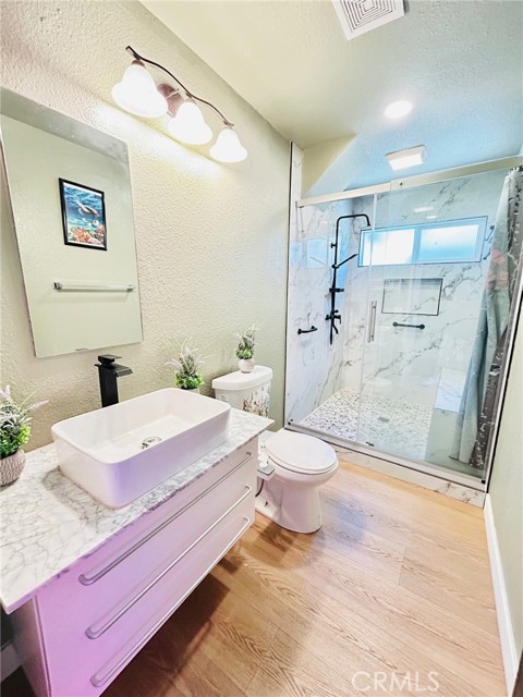 Welcome to this beautiful single-family detached home built in 1987 that features 3 beds and 3 baths. As you step into the home, you are greeted by a vaulted ceiling living room burst with ample natural lights and a cozy fireplace. The newly remodeled kitchen is open to a family room/dining room and offers an elegant breakfast counter. Stainless appliances and quartz countertop are standard. The upstairs master suite features vaulted ceiling, spacious walk-in closet, and a newly renovated master bath with floating dual vanity sink. Other features include luxury vinyl floor thru-out and 3 newly renovated baths with walk-in shower. Additionally, there is a fully permitted 157 Sq. Ft. enclosed patio next to the living. Low maintenance yards and no HOA. Conveniently located just minutes to the well known "The Source OC" shopping mall, freeway 5 and 91, Knott's Berry Farm, Downtown Buena Park, public transportation, schools, churches and more! Hurry it won't last long! Price to sell quickly. Last comp right next door sold for $930K in Sept 2024.