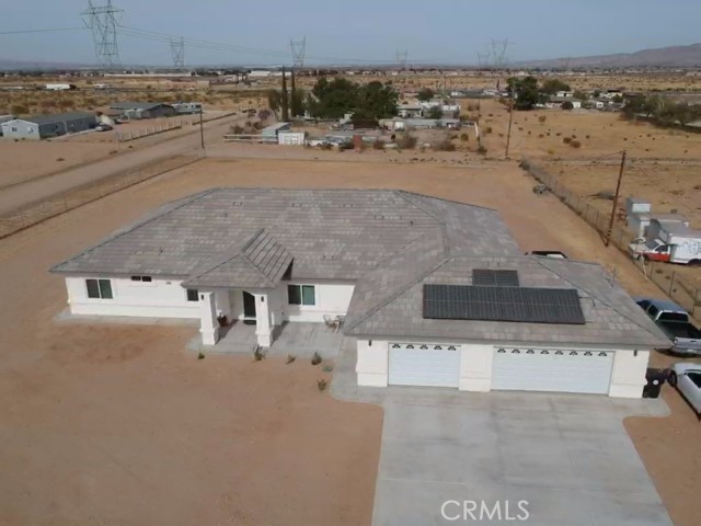 Location!!! Location!!! Location!!!, Your dream Home awaits. Beautiful and spacious 4 Bedroom and 3-bathroom Corner lot Home Located in the desirable area of Mountain View Acres in Victorville. Open Floor plan, Tile roof, Tankless water heater, Laminated wood flooring throughout, Quartz counter tops in Kitchen and Bathrooms. 1000+ Sq Ft 3 Car Garage with 240V EV Charger. Close to shopping, Dining, Schools and More. Plenty of Room for your Desert toys, RV'S and if you are a Tractor Trailer Owner this property accommodates your needs. Move in Ready. Fully Owned Solar Panels.