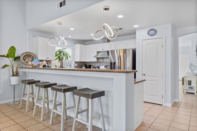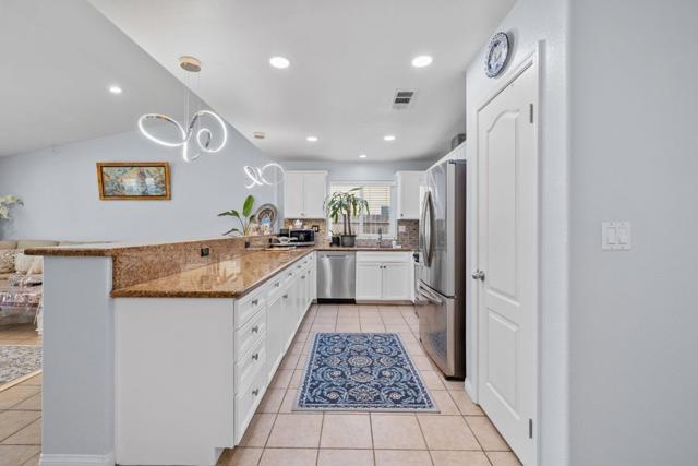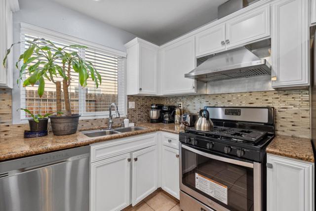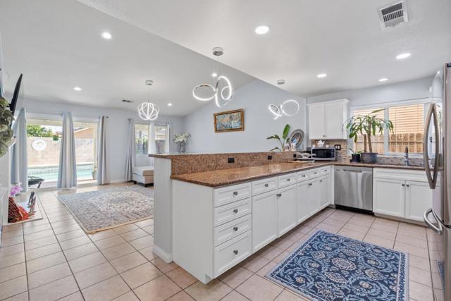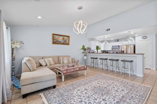 Upon entering this lovely 3 bedroom, 2 bath home, you'll be welcomed by high ceilings and a spacious formal living room that seamlessly transitions into the dining area. This home boasts tile flooring throughout. The kitchen is equipped with a large breakfast bar offering ample seating space, complemented by granite countertops, a mosaic tile backsplash, and stunning white cabinetry for all your storage needs. The main living room is bright and airy, filled with natural light. The primary bedroom features an ensuite bathroom with dual sinks, a walk-in shower, and a separate soaking tub while the remaining bedrooms are all a great size for kids, guests, or office space. The backyard is an entertainer's dream, with a large patio area and a luxurious pool for hosting year-round. This home also includes a 2 bedroom, 1 bath ADU unit that was converted from the garage that can be used as a home office, granny unit or income producing unit. Complete with a full kitchen, featuring gorgeous backsplash and countertops, a bathroom with a walk-in shower.