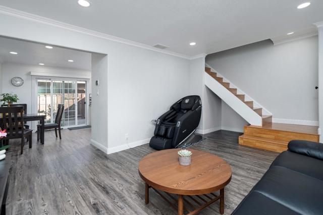 Welcome to this beautifully updated 2 bedroom, 1.5 bath townhome in the heart of San Jose. The thoughtfully designed kitchen offers plenty of counter space, perfect for meal prep and family gatherings, while the separate family room provides a cozy retreat for relaxing or entertaining. Enjoy elegant luxury vinyl plank flooring that flows seamlessly throughout, complemented by recent fresh paint, recessed lighting, and stylish fixtures that give the home a modern touch. Convenience is built in with a dedicated laundry area and a 2-car carport located just steps from the kitchen for easy access. Outside, you'll find nearby green space and a playground ideal for families to enjoy. Whether you're a first-time buyer or looking to downsize, this move-in-ready home offers comfort, charm, and an excellent location in vibrant San Jose. Some photos has been virtual stage.