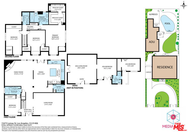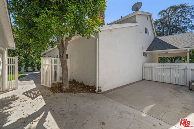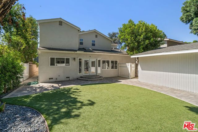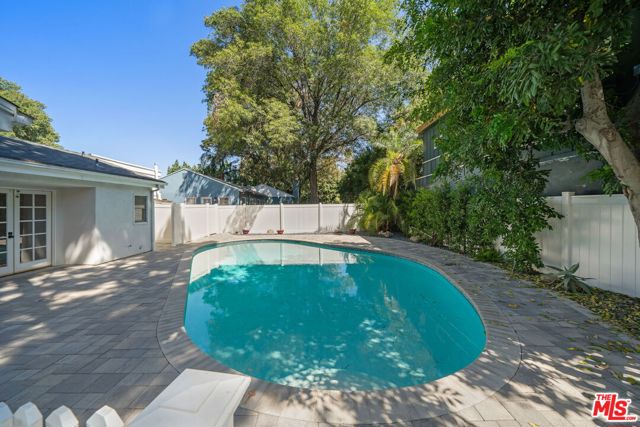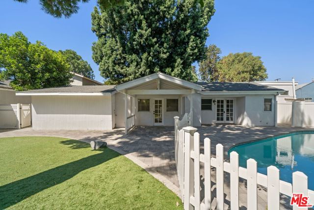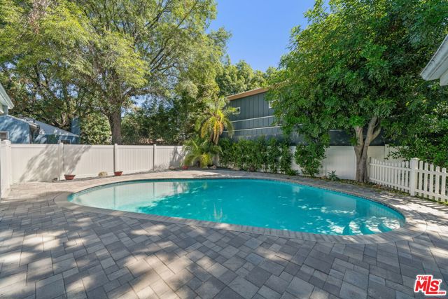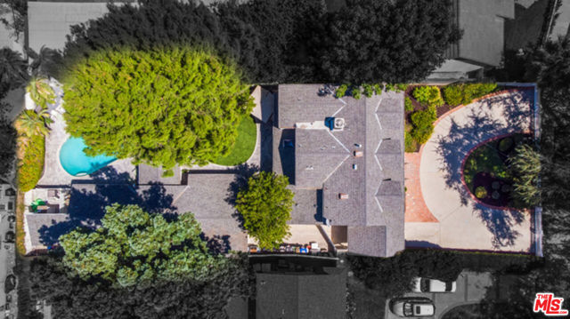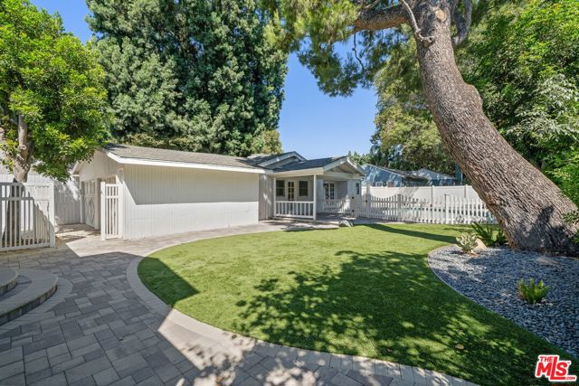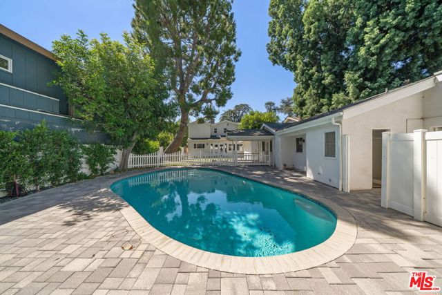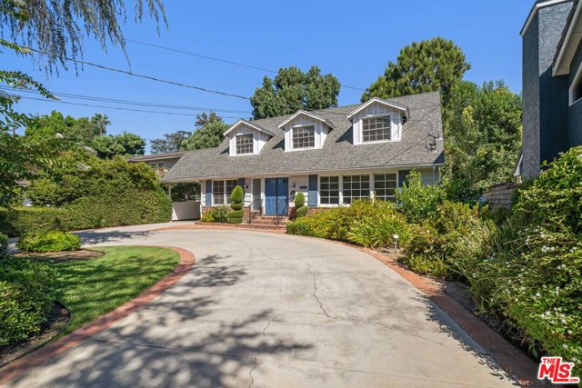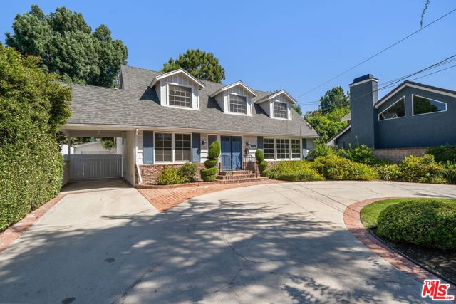 Located in the prestigious Midvale Estates, this stunning turnkey Cape Cod retreat sits on an expansive 11,000 sq. ft. flat lot with a sweeping circular driveway. Classic curb appeal is showcased through a brick wainscot facade, inviting dormer windows, while inside you'll find bright and spacious living areas with hardwood floors, an elegant grand living room and a cozy family room. The gourmet kitchen boasts Corian countertops, a custom marble island and seamless flow to the formal dining and living spaces. The home features one bedroom downstairs and three upstairs, including a luxurious primary suite offering a spa-inspired bathroom and two oversized walk-in closets. The property's amenities include a dedicated laundry room, a 2-car garage plus carport, and an upgraded HVAC system. The entertainer's backyard is a private oasis featuring a resurfaced saltwater pool with new plumbing and equipment, expansive paver decking, a large grassy area, and towering mature trees that provide both beauty and privacy. Adding to the appeal, the property includes a charming 950 sq. ft. (approx.) guest house with 2BR+1BA, perfect for extended family, guests, gym, or a home office retreat. Blending timeless Cape Cod charm with modern upgrades, this exceptional property delivers comfort, style and functionality in one of the Valley's most sought-after neighborhoods.