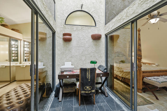 Welcome to this charming 2-bedroom, 2-bath condo in the peaceful, north-facing section of Woodhaven Country Club. This home features open, airy living spaces, with a thoughtful conversion of the atrium into a functional office area -- perfect for working from home or enjoying a quiet retreat. The condo is nestled in a serene location within the community, offering a tranquil environment while still being centrally located.Woodhaven Country Club offers a wealth of amenities for an active lifestyle, including an 18-hole golf course, tennis and pickleball courts, 4 heated pools and spas, a fitness center, and full security with a guarded entrance. The clubhouse provides a welcoming space to relax with dining, drinks, and a variety of social activities to enjoy.This home's location is second to none, with easy walking access to grocery stores, restaurants, and shopping -- making it incredibly convenient for all your daily needs and perfect for embracing the laid-back desert lifestyle. Very good seasonal rental income available to the home owner!Don't miss your opportunity to own a beautiful home in this highly sought-after, well-maintained community, where comfort, convenience, and recreation meet.