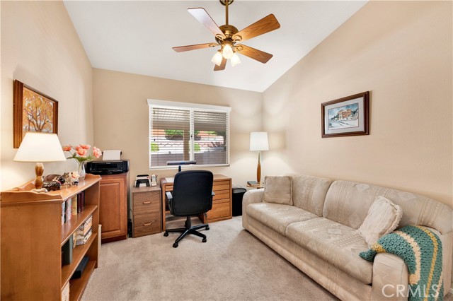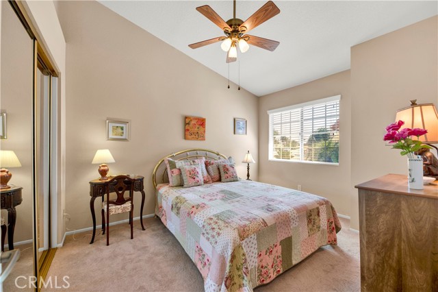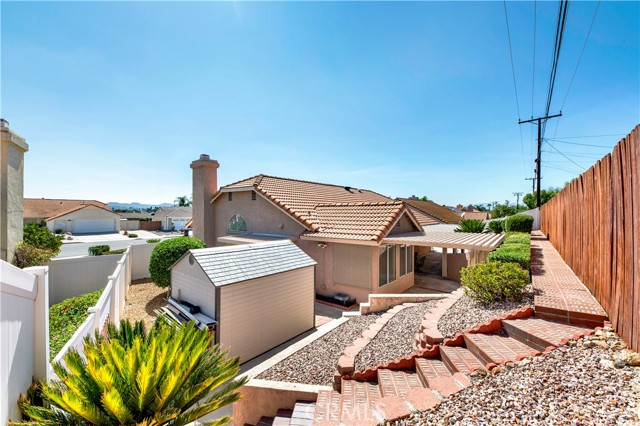 Beautiful and Rare 3 Bedroom 2 Bathroom Home with Gated RV Parking located in the highly desirable 55+ Age Serenade Community within the heart of Menifee . This home is within a 55+ Community but does not have an HOA and offers Low Taxes. Step inside to a light filled home with an open floor plan . The upgraded tile flooring flows throughout the high traffic areas including family room , kitchen , hallways and bathrooms with carpet in the Living Room, Dining Room and all bedrooms. The spacious living room is located at the front of the home with a cozy fireplace. The hallway leads to 3 spacious bedrooms . The first bedroom is privately located for guests or a home office. Double doors open to the spacious primary suite with en-suite bathroom offering double vanities, luxurious soaking tub, and walk in shower plus a generous sized walk in closet . Your kitchen features lots of cabinets,pantry , abundant counter space , stainless steel appliances , large dining area , and open to the family room with large windows and views of your tranquil backyard . Enjoy serene outdoor living with easy to maintain front landscape and relaxing backyard with beautiful landscape and fruit trees to enjoy from your Alumnawood Patio stretching the entire length of the home plus a large side yard with shed. Additional highlights of this home is the inside laundry room , oversized 2 car garage with workshop , NEW AC unit in 2022, and Affordable Energy Efficient Solar Power Purchase Agreement keeping your home energy bills low . Don't miss this wonderful home and community !!