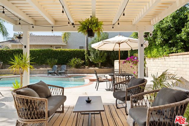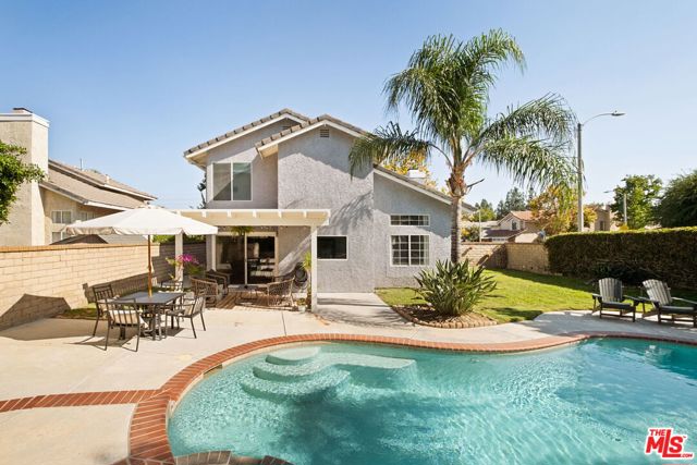 Welcome to this stunning corner lot home in Brock Canyon featuring a private pool and spa. Step inside to soaring vaulted ceilings, abundant natural light, and an airy open floor plan. The living room features a cozy fireplace and flows seamlessly into the formal dining area, creating the perfect setting for gatherings with family and friends. The newly remodeled kitchen showcases brand-new appliances and looks out to the backyard, offering a bright and functional space for everyday living and entertaining. A convenient downstairs powder room and attached two-car garage add to the thoughtful design. Step outside to your own backyard retreat with a resort like feel. Enjoy a sparkling pool and spa, a shaded patio cover, and plenty of room for weekend relaxation or evenings under the stars. Upstairs, the light-filled primary suite offers high ceilings and generous space, while the two additional bedrooms share a full bath. This home also includes fully paid off solar panels and an EV charger, delivering both sustainability and savings. Enjoy two neighborhood parks, including one that is gated with a playground and picnic areas. You will also love the close proximity to award-winning schools, shopping, dining, Central Park, and Santa Clarita's scenic open spaces. With no Mello Roos and low HOA fees, this home offers outstanding value in one of Saugus' most sought-after communities. Do not miss the opportunity to make this special home your own.