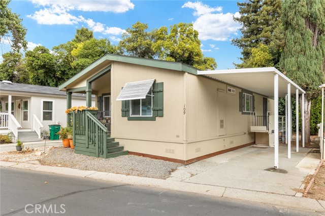 Welcome to 567 E. Lassen Avenue, Space 109. This beautifully maintained, turnkey home was custom built in 2019 and offers 2 bedrooms, 2 bathrooms, and approximately 1,144 sq. ft. of comfortable living space. Step inside to find a bright, open floor plan with abundant natural light, a spacious living room, and a well-designed kitchen featuring rich cabinetry, generous counter space, and room for dining. The refrigerator and freestanding freezer are included for your convenience. Both bedrooms are generously sized, and the bathrooms are tastefully appointed for ease and comfort. Outside, you’ll enjoy a low-maintenance yard with a wheelchair-accessible lift, storage shed, and covered parking. With a newer roof and HVAC system, you can move in with peace of mind knowing big-ticket updates are already taken care of. Located in the desirable Almond Grove Mobile Home Park, residents have access to a clubhouse, in-ground pool, and community amenities perfect for entertaining friends and family. The central location provides easy access to shopping, dining, and entertainment, making everyday living both simple and enjoyable. Experience the best in senior living—schedule your private showing today!