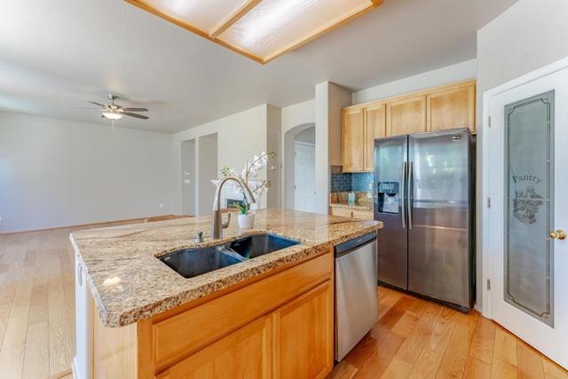Experience resort-style living in this move-in-ready home, featuring a sparkling gunite pool and a beautifully designed backyard, perfect for entertaining or unwinding. The chef's kitchen features granite countertops and stainless steel appliances, and opens to the breakfast nook and family room, both of which have hardwood floors. The elegant primary suite offers a private retreat with a fireplace. Additional highlights include a downstairs guest room and backyard storage, blending comfort, style, and sophistication.