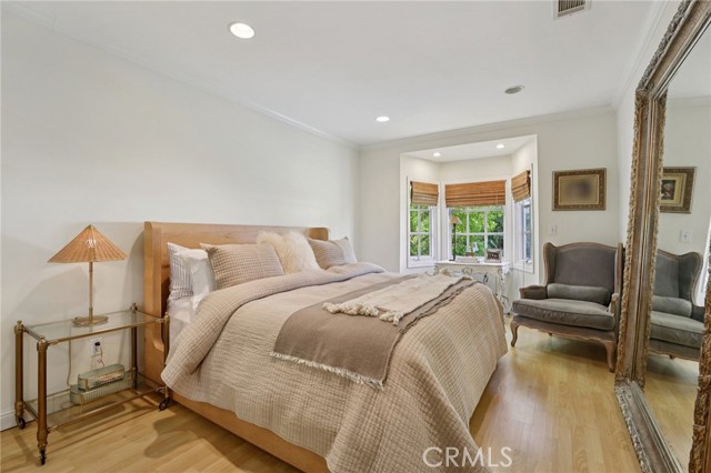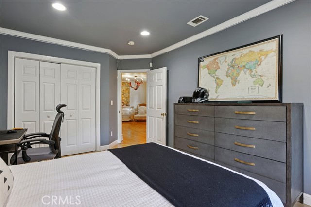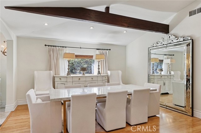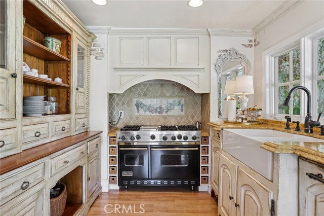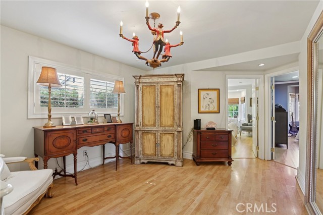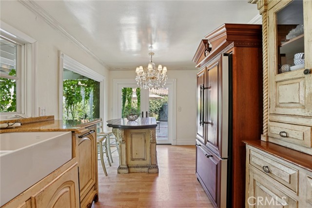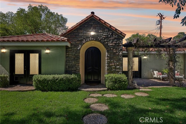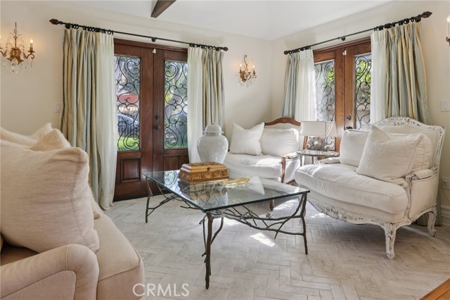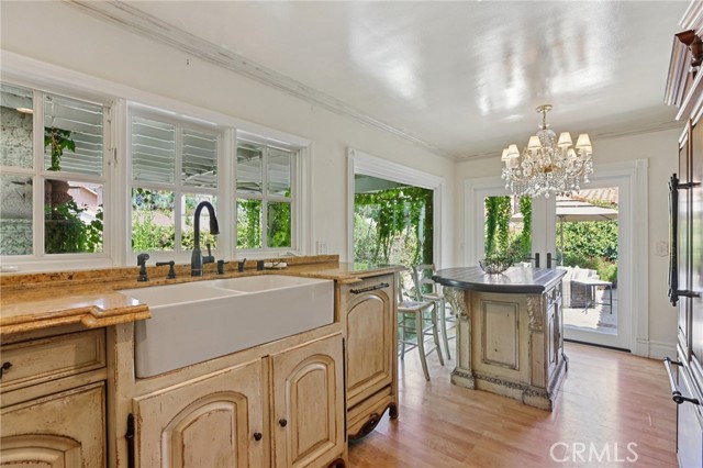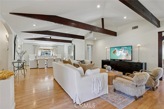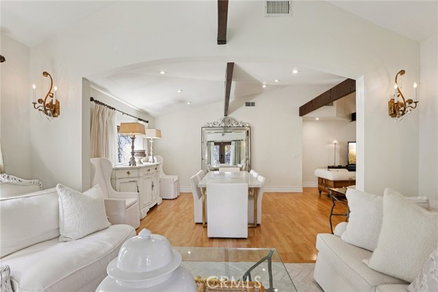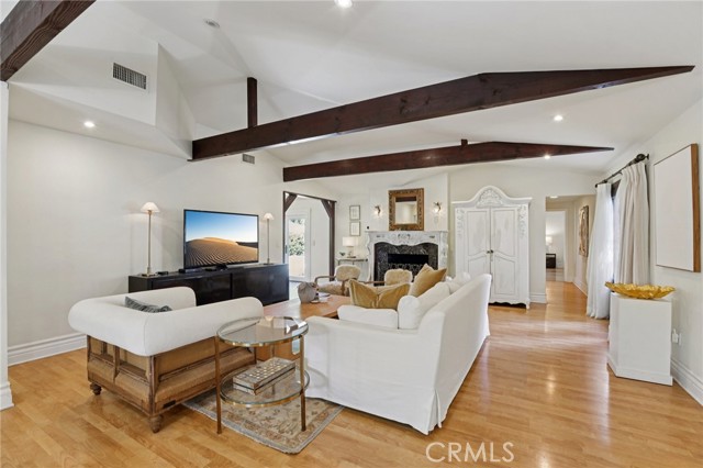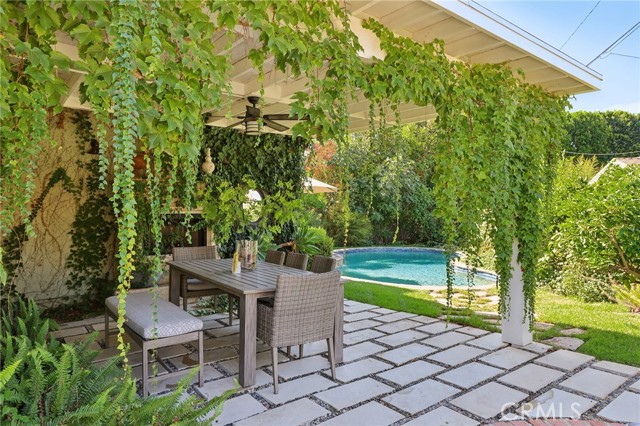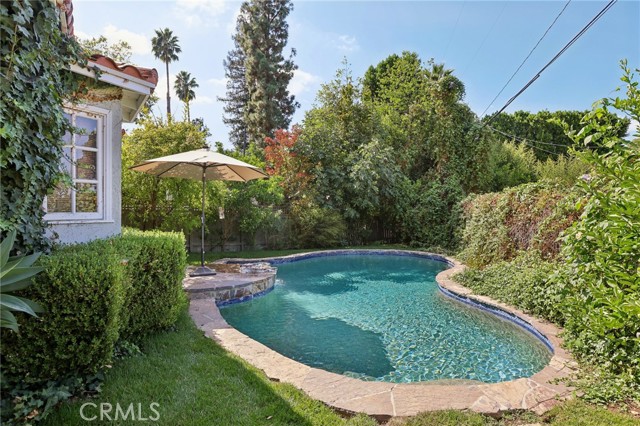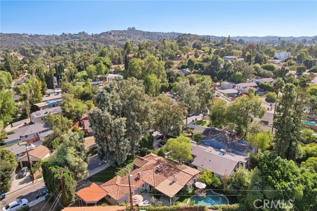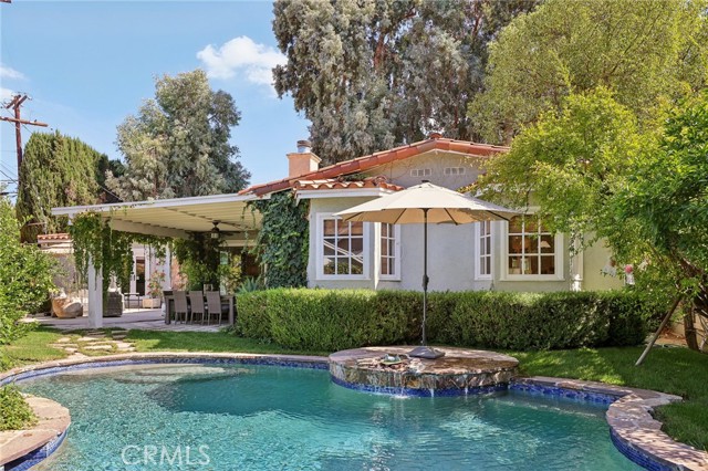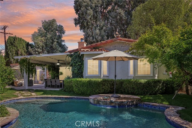 Exquisite Single-Story Home in Prime Woodland Hills – South of the Boulevard! Welcome to a rare offering in one of Woodland Hills’ most coveted neighborhoods—an impeccably appointed, move-in-ready single-story residence boasting timeless elegance, luxurious finishes, and over 2,550 SQFT of thoughtfully designed living space. This sophisticated 3-bedroom + office, 2-bathroom home effortlessly blends classic charm. Step through the formal foyer into a stunning entertainer’s living room, highlighted by soaring wood-beamed ceilings, a statement gas fireplace, and an open, inviting layout. The gourmet kitchen adorned with elegant French-style cabinetry, a premium 6-burner Viking gas range, built-in refrigerator, and a cozy breakfast nook framed by an expansive picture window showcasing tranquil views of the lush, manicured backyard. Custom French doors seamlessly connect indoor and outdoor living, opening to a breathtaking private oasis designed for both relaxation and grand entertaining. The resort-style backyard features a sparkling Pebble Tec pool, a covered patio with a charming outdoor fireplace, vibrant landscaping, multiple mature fruit trees, and an ambiance of total seclusion. Perfectly positioned just minutes from the high-end shops and restaurants of The Village at Topanga, Westfield Mall, and a short drive to the iconic Calabasas Commons, this extraordinary residence offers luxury, location, and lifestyle at an exceptional value. A true gem and one of the best-priced homes in this prestigious enclave.