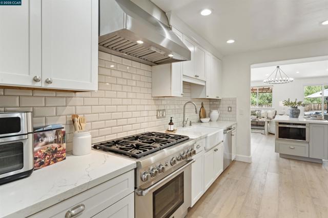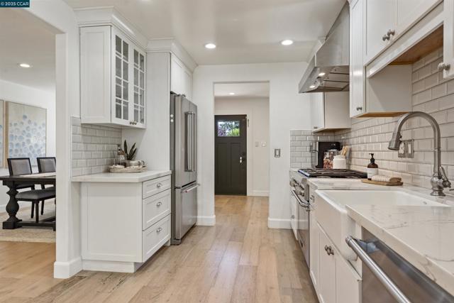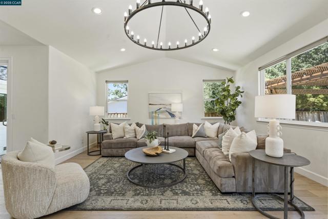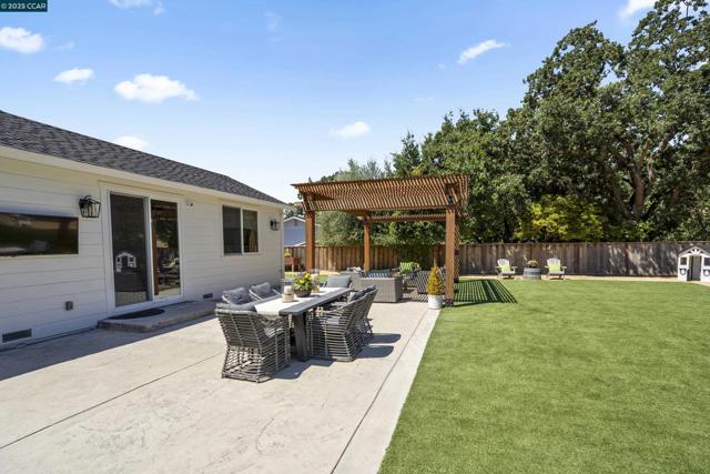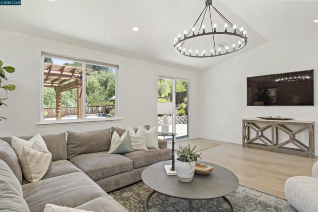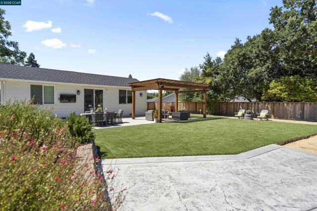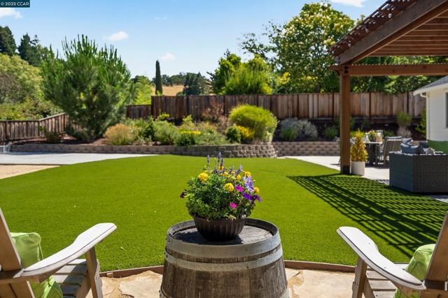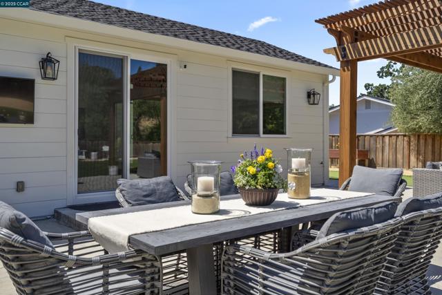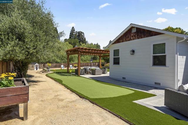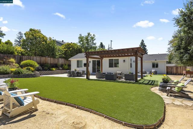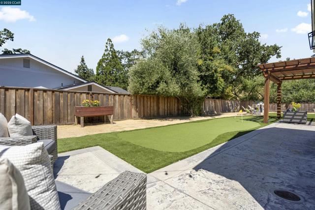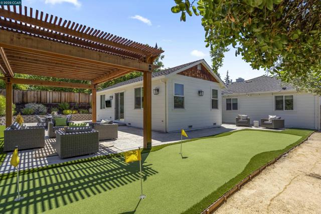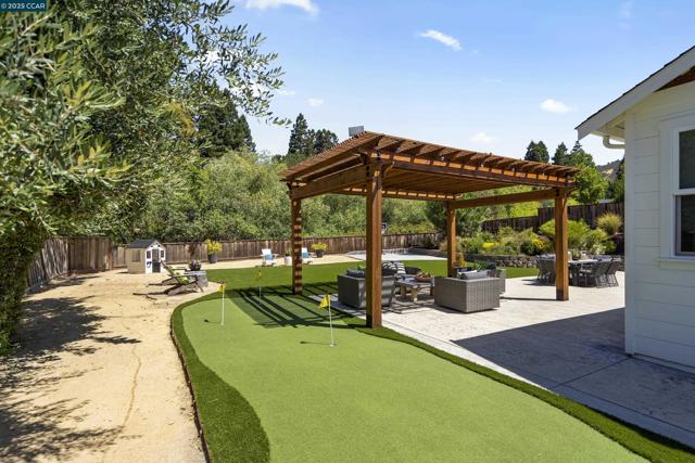 No Open House on Sunday, 10/4. This single-story rancher is made for living, playing, and gathering. The expanded Great Room is filled with natural light and opens to a backyard designed for fun — sports court, putting green, wide turf lawn, and a shaded pergola for relaxing while the kids entertain themselves. With no rear neighbors and hillside views, it’s private and peaceful. The open kitchen is the heart of the home, with stainless Thermador appliances, a large island for casual meals, and a wine bar that makes hosting easy. Wide-plank hardwood floors, updated baths, and Milgard windows bring comfort and style throughout. Recent renovations plus the oversized Great Room add even more value: new roof, siding, porch, stone details, and landscaping ensure everything is move-in ready. Extra long driveway to park 4 cars. Located in a vibrant, revitalized neighborhood close to parks, trails, top schools, downtown and highly-rated Roundhill and Diablo Country Clubs. Priority access to Green Valley Pool for Cameo families. A home that’s ready to welcome yours. True sense of community. Amazing opportunity to live in a top Danville neighborhood. What could be better?