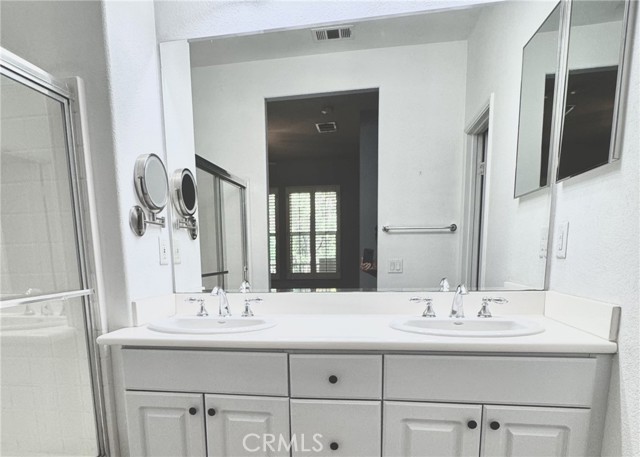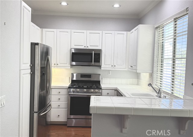 Welcome to the Beautiful Prestigious Luxury Gated Community of Heather Ridge offering a 2 bedroom, 2 bath corner unit Condo with 1216 square feet of spacious and open floor plan. This home condo comes equipped with stainless steel appliances that includes Gas Range, Microwave, Dishwasher, Refrigerator and garbage disposal. Living room showcases newly renovated fireplace and is open to the kitchen area. Recessed lighting through out, Ceiling Fans in every room, wood shutters in the bedrooms and a private balcony with extra storage room. Washer and Dryer space side by side in its own area.The Master Suite is a peaceful retreat with an en-suite bathroom with double sinks and a private potty room as well as a big walking closet. This unit includes a 2 car garage with direct entry into the home. The amenities in this community include a sparkling pool, spa/Hot Tub, BBQ, Tennis Court(s) and Basketball Court. This condo just got a new refreshed look and is ready for the right person to move right in. Close proximity to 14 Fwy, shopping, entertainment and dining.
