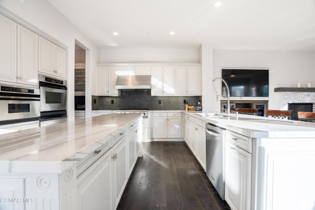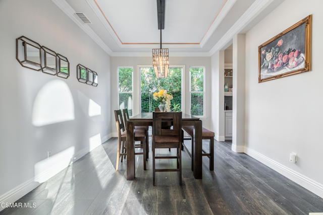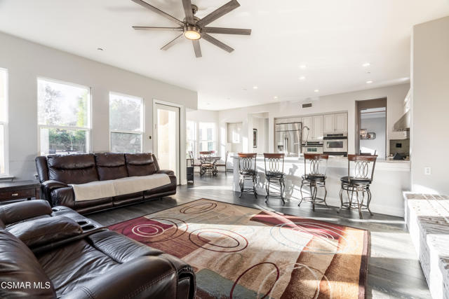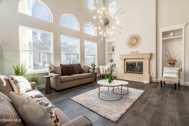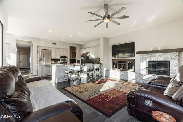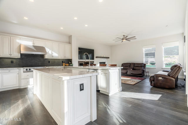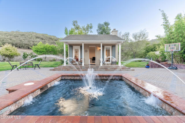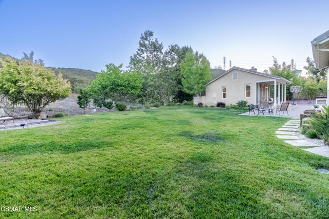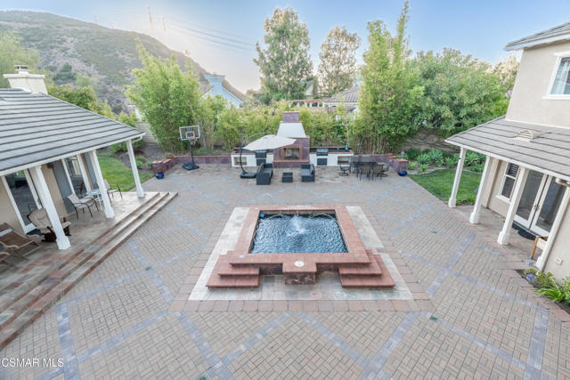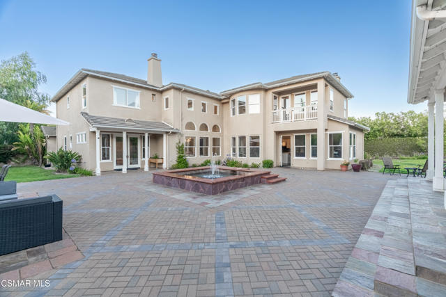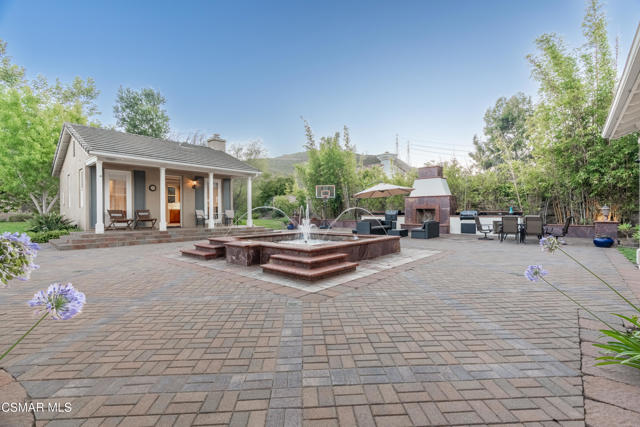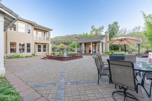 One of the most beautiful and usable lots in Dos Vientos! Immaculate, highly desirable estate on a one-of-a-kind property with views in exclusive gated Palermo! Grand entrance welcomes to open natural light filled living room with cathedral ceilings. Stylish and extensively remodeled with exquisite decor and design. Gorgeous wood flooring, designer paint, built-ins, and chic light fixtures. Remodeled chef's dream kitchen is ideal spot to host friends and family, featuring beautiful cabinets, ample storage, walk-in pantry, quartzite countertops, stacked backsplash, stainless steel appliances, and a big center island with breakfast bar and nook overlooking the yard. Adjoining is a spacious family room with a wall of windows. Includes downstairs ensuite bedroom and office. Private primary suite with retreat, carpet floors, walk-in closet, dual vanities, tub, and separate shower. Two additional ensuite bedrooms upstairs and bonus room with balcony and amazing mountain views. More than 26,000 square feet backing to gorgeous open space. Private entertainer's dream yard offers a spa with fountain, patio with multiple seating areas, stone paths, lush landscaping, variety of fruit trees, stone outdoor fireplace, and huge grass area. Casita with kitchenette, bath, and fireplace perfect for guests. Three-car garage! Wonderful curb appeal. A special offering. Must see!