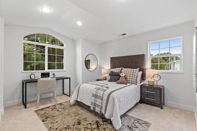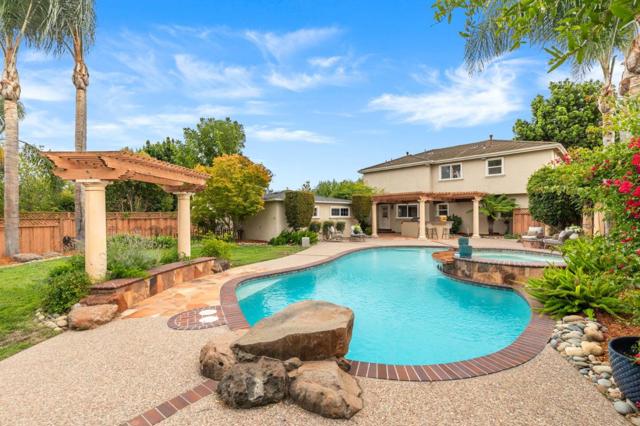 Welcome to 4117 De Mille Drive, an elegant West San Jose retreat where timeless charm meets smart, modern updates, and top rated Prospect Highschool. With 5 bedrooms, 3.5 baths, and approximately 2,738 sq ft of living space on a generous 10,425 sq ft lot, this home checks all the boxes. As you step inside, youll notice all-new interior paint and fresh carpet seamlessly unite the spaces, creating a pristine canvas for your life. The gourmet kitchen and remodeled half bath boast high-end finishes and intuitive design to delight any chef or guest. The layout is ideal for families and entertaining alike: two bedrooms and two baths downstairs, while the entire upstairs is dedicated to your primary suite, two additional bedrooms, two more baths, and a versatile living room retreat. Step outside into your private oasis: a massive yard anchors a stunning pool with spa and waterfall, while a natural gas fire pit, garden beds, and low-maintenance landscaping add character and ease. Multiple patios invite relaxation, while two driveways provide parking for 8+ vehicles or convenient RV access. The oversized 2-car garage offers flexibility to convert part into a pool house, studio, or home office. Tech meets convenience with smart doorbell and AC systems, keeping comfort at your fingertips