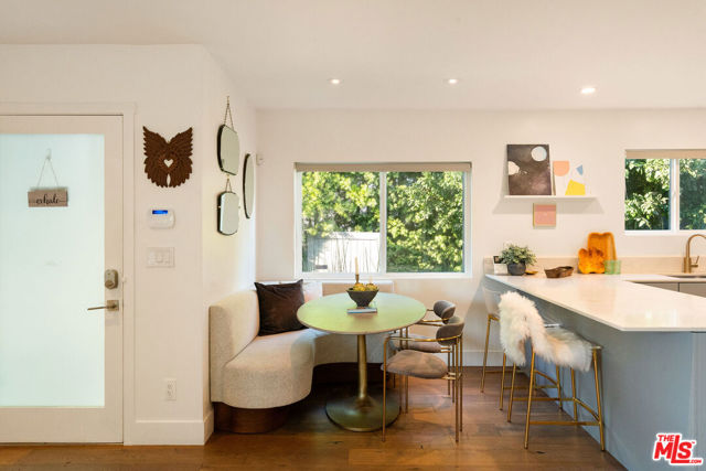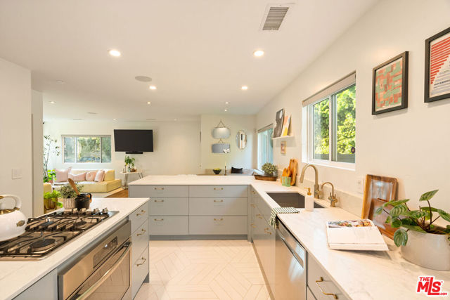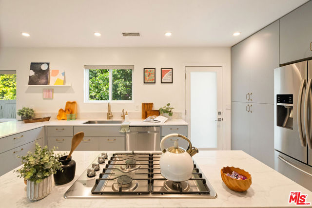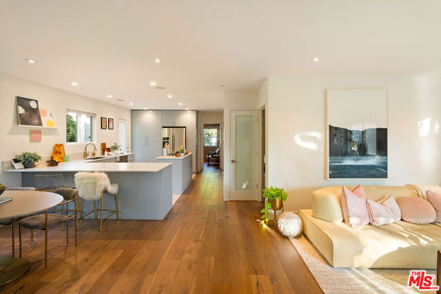 Tucked away on a rare 8,538 square foot lot, this 4 bdrm/3 bath home has been completely renovated, creating a haven where beauty meets possibility, and every corner invites comfort and ease. Set on one of the Westside's most inviting streets, this home blends warm California style with chic modern updates and feels like a private resort, surrounded by lush, magical landscaping that creates a serene oasis in the heart of the city. Inside, the living space unfolds across a bright, open concept layout where the living room, dining area, and chef's kitchen flow effortlessly together. The kitchen is a showstopper, featuring high-end appliances, an oversized breakfast bar, custom cabinetry, and elegant tile-work that makes cooking and entertaining a joy. Spa-inspired bathrooms and airy bedrooms complete the home's thoughtful interior. Step outside to discover the real magic - a peaceful, gated backyard with lush gardens and four distinct outdoor areas, including a sunny dining patio, a shaded lounge and garden retreat, and a wide-open yard offering endless possibilities to add a pool! The detached garage, with its roll-up door opening directly to the garden, is a flexible bonus space - ideal for a hangout room, yoga or zen retreat, creative studio, office, or even a future ADU! Perfectly positioned near Westside favorites like Hatchet Hall, Lodge Bread, Menotti's, The Corner Door, and Saijo Handroll Bar, this home delivers the best of both worlds: a tranquil, move-in ready sanctuary with unmatched access to the area's best dining, shopping, and beaches.
