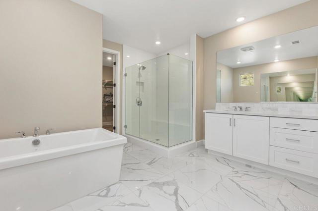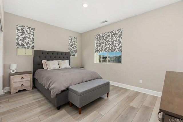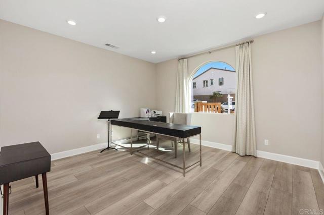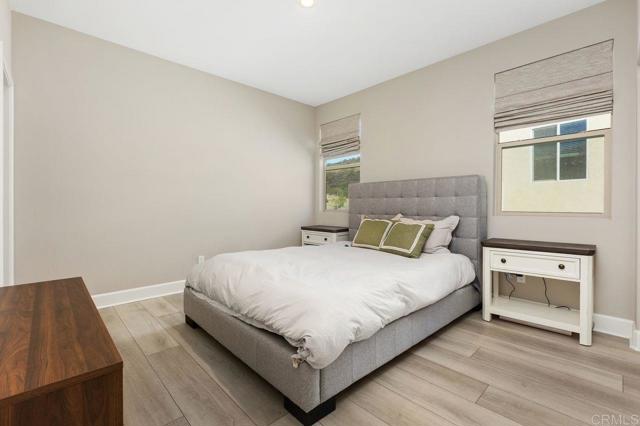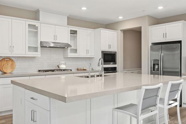 Welcome home to this one of a kind custom home with paid for solar in the beautiful neighborhood of Skylark! This elegant home has 2 primary suites-one upstairs, and one downstairs. The upstairs primary is a luxurious, peaceful retreat with a large walk in closet, a sitting nook for reading, a spa like bathroom with dual vanities, large walk in shower and a soaking tub. The open concept home boasts custom recessed lighting throughout, dual thermostats, a whole house water filtration system, a gourmet kitchen with large walk in pantry and plenty of storage everywhere you look! Directly off the foyer, is a private office with ample natural lighting that feels bright and fresh giving you the perfect place to work from home! The loft/bonus room upstairs is a great spot for kids, teens or multi-generational living, giving you that extra space for quality time movie nights with your family. Outside, the large sliding glass door opens the way for an enormous covered patio, giving you the indoor/outdoor living that everyone in Southern California is looking for! Picture outdoor meals with your family on cool fall nights, with the built in BBQ conveniently located right outside, and the fire pit lounge ready for smores after dinner! With no neighbors behind you, the fire and water feature outside completes the peaceful, relaxing evening retreat you are looking for at the end of the day! Finally, the 3 car garage features an epoxy coating, a tankless water heater, loads of storage areas, and an EV car charger!