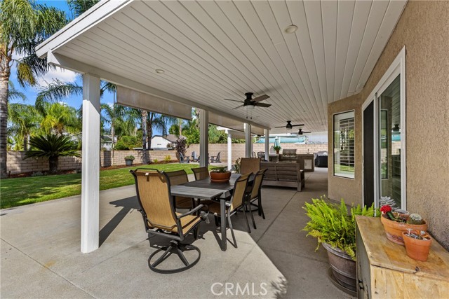 Skip the renovations — this home is already beautifully UPGRADED and completely MOVE-IN READY! Step through the Double Doors into a bright, open Floor Plan with Vaulted Ceilings, SHUTTERS, and LAMINATE Flooring. Celebrate special occasions in the open Family and Dining Room, or relax by the cozy fireplace in the Family Room that opens up to the beautifully REMODELED Kitchen. Your inner-Chef will enjoy all the Modern Conveniences of a Farmhouse Sink, in-island Microwave, 6-burner Stove, Hood, and plenty of storage — perfect for everyday living and entertaining. A DOWNSTAIRS BED and BATH add flexibility for Multi-Gen Living or a Home Office. UPSTAIRS, 2 Bedrooms share a convenient JACK-AND-JILL BATH, while the Primary SUITE offers another FIREPLACE, private BALCONY, spa-like Bathroom with Soaking Tub, Walk-In Shower, and DUAL CLOSETS with Organizers. There’s even an add’l Walk-In Closet with hidden Attic access for clever storage. The Backyard is built for Family and FUN — with an inviting space centered around a BBQ Island, Patio Cover with Fans/Lights, Outdoor Seating Areas, and Mounted TVs…it’s the perfect setting for Movie Nights or Sports Weekends. Sitting on a Generous LOT, the spacious Front and Back Yards offer charm and functionality with an abundance of Mature Landscaping and room to add a POOL. An attached 3-CAR GARAGE with Cabinets and a spacious Driveway provide plenty of Parking and Storage, making this home as practical as it is inviting. SAVE MONEY every month with 34 SOLAR Panels (PPA), Whole House Fan and NEW Oversized A/C unit. If you’re searching for a home that’s been lovingly cared for and ready to enjoy from Day 1…then this one is a MUST-SEE! Don’t miss this rare opportunity to own a beautiful home in a PRIME LOCATION near the University of Redlands, schools, shopping and everyday conveniences.