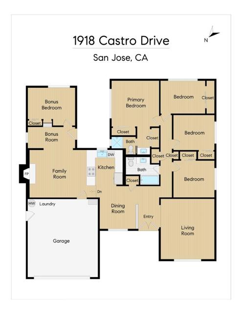 Completely remodeled and updated West San Jose home with excellent curb appeal. This home has an all new kitchen, new hardwood floors, new landscaping, new roof, updated bathrooms and new interior and exterior paint. The single-level floor plan offers approximately 1,585 square feet with four bedrooms and two updated bathrooms; plus a fifth bonus bedroom and a bonus office that is an additional 225 square feet. The house and bonus spaces total ~1,810 square feet. Inside, new engineered hardwood floors unify the interiors, while new light fixtures add modern touches throughout. The single-level floor plan offers a spacious living room with expansive front window. The home has a formal dining room and family room with a fireplace. The open kitchen has been thoughtfully remodeled with white cabinetry, quartz countertops, and a full-height backsplash, complemented by a complete suite of stainless steel GE appliances. Outdoor enjoyment unfolds in the private rear yard, which includes a level lawn, and a variety of fruit trees such as Fuji apple, Granny Smith, fig, and persimmon. Completing the appeal is the homes excellent location just blocks from Westgate Shopping Center, Trader Joes, and Sprouts Farmers Market, with easy access to Highways 85 and 280.