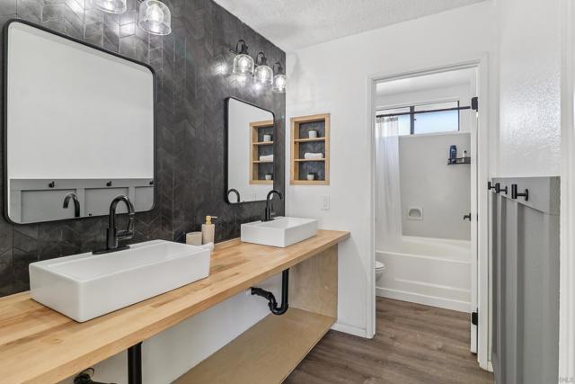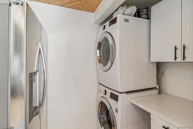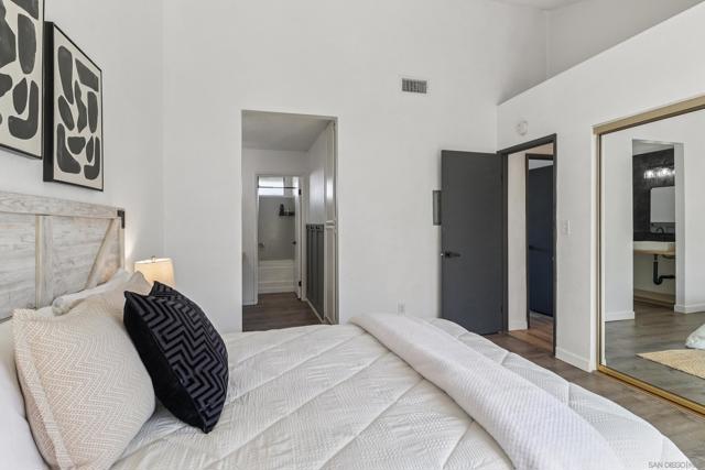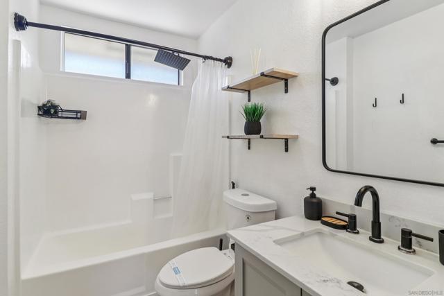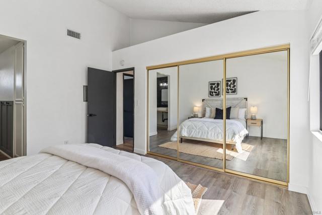 Move right in to this beautifully updated Lakeside home! Nestled in a quiet neighborhood, this spacious residence features vaulted ceilings, abundant natural light, and a cozy fireplace in the living room. The modern kitchen shines with custom cabinets, quartz countertops, farmhouse sink, and appliances purchased just last year. Both the guest and primary bathrooms have been stylishly renovated, while updated flooring and fresh finishes run throughout. Enjoy the comfort of an updated central A/C, newer water heater, fridge and in-unit laundry. Relax on your private balcony or take advantage of 2 assigned parking spaces (one covered) plus ample guest parking. VA-approved complex! This home is the perfect balance of modern upgrades and warm charm—don’t miss it!
