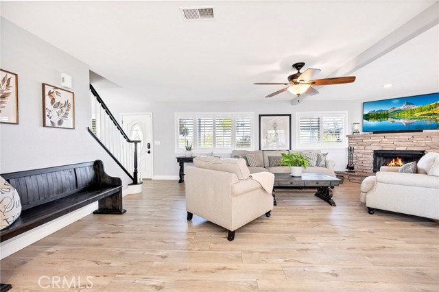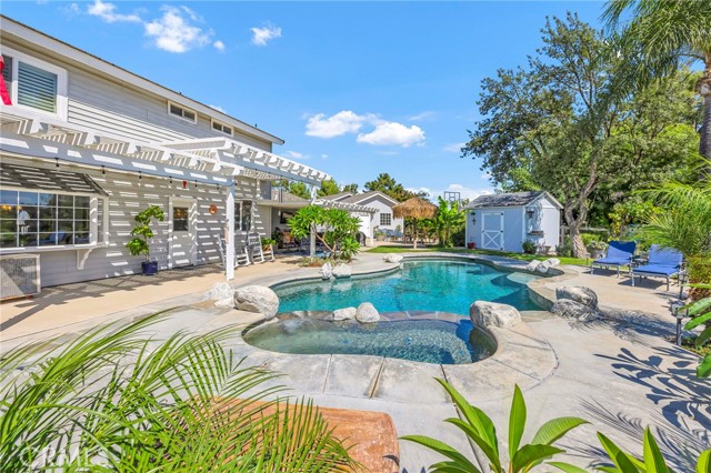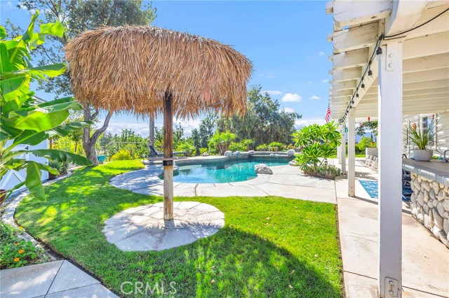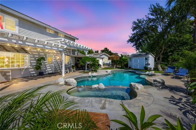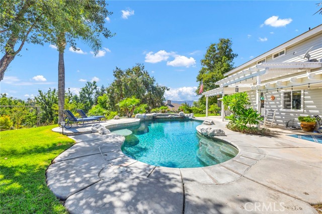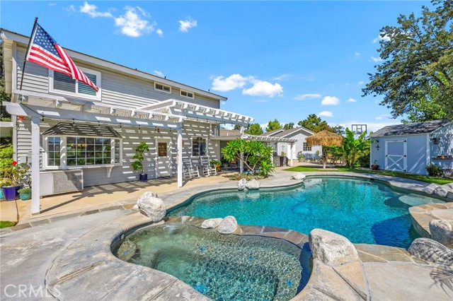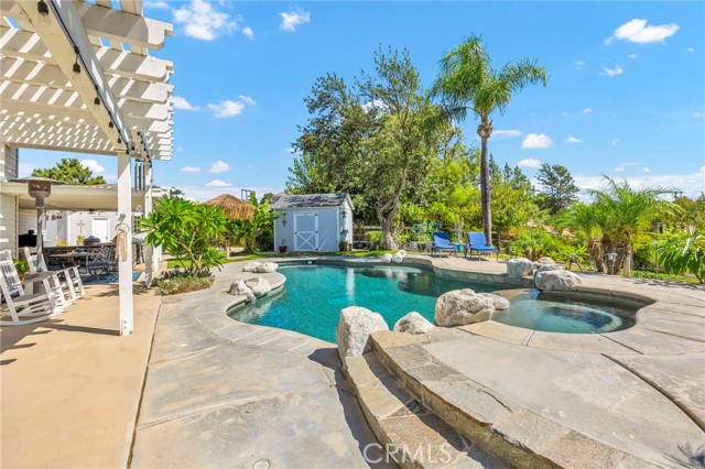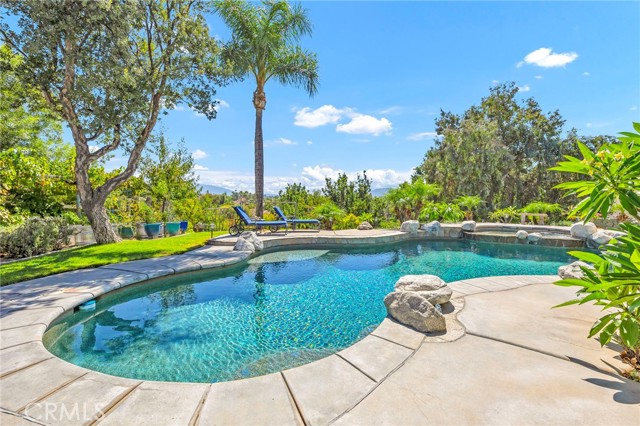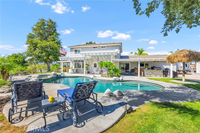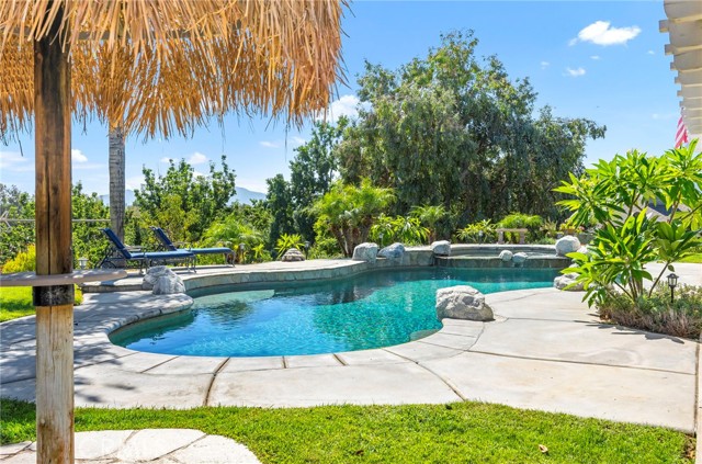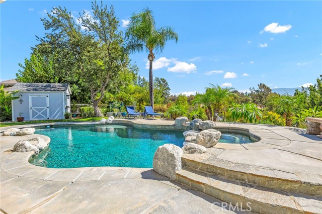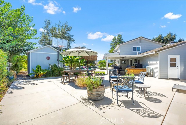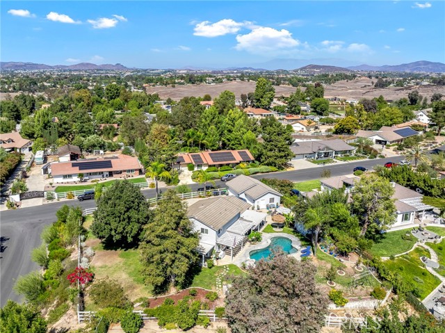 Welcome to your new sanctuary, perfectly nestled on a sprawling 22,651 sq ft corner lot in the coveted Meadowview community of Temecula! This stunning 3-bedroom, 2.5-bathroom home boasts an expansive 1,864 sq ft of luxurious living space, complemented by two bonus rooms and a dedicated laundry/storage room, adding approximately 500 sq ft of versatility to your lifestyle. As you arrive, be enchanted by the majestic Southern Live Oak gracing your yard, complete with a whimsical swing that sets the tone for relaxation and comfort. Step into your private backyard oasis, where resort-style living comes to life! Dive into the sparkling pebble tech pool and unwind in the luxurious spa. Host unforgettable summer barbecues at the built-in BBQ, shoot hoops on your own basketball court, and soak in the breathtaking 270° mountain views that unfold before you. Inside, modern sophistication meets cozy warmth. The main level features stylish LVP flooring and elegant plantation shutters throughout, illuminated by recessed LED lighting. The heart of the home—the beautifully remodeled kitchen—exudes charm with a chic subway tile backsplash, timeless white shaker cabinets, and a farmhouse sink. Equipped with gleaming quartz countertops and top-of-the-line stainless steel appliances, including a wine cooler, this kitchen is a haven for culinary enthusiasts. It flows seamlessly into the family room, where a stunning split-face stone veneer fireplace creates the perfect ambiance for gatherings and relaxation. Upstairs, the primary suite and two additional bedrooms feature plush carpet, abundant natural light, and sweeping valley views. The fully fenced backyard is an entertainer's paradise! Enjoy multiple covered patios for alfresco dining, a cozy side porch for quiet moments, and an impressive array of fruit trees and raised garden beds, complete with a charming grape arbor. Additional features include RV parking, a spacious 3-car garage, and a wrought iron private entry gate for added security and privacy. Living in the Meadowview community means you also enjoy exclusive access to a clubhouse, multiple pools—including an Olympic-sized lap pool, tennis and pickleball courts, basketball courts, playgrounds, parks, and picturesque hiking and riding trails. This prime location is just minutes from award-winning schools, vibrant shopping, serene parks, and the renowned Temecula Wine Country.