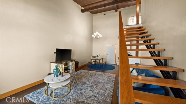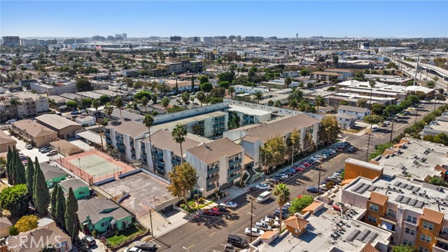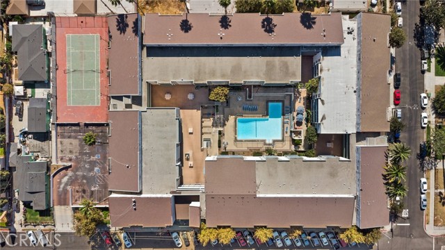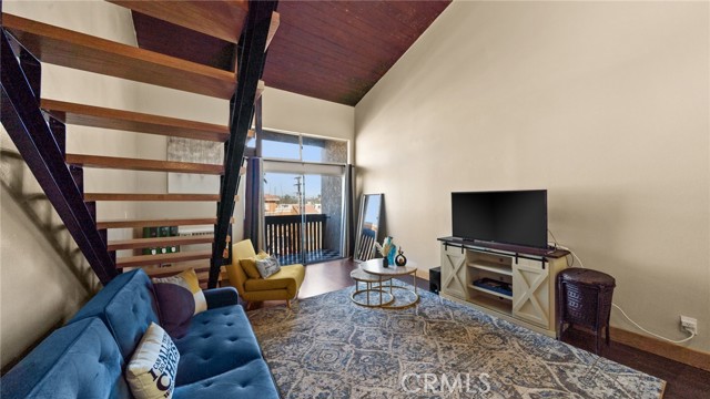 This beautiful end unit condo welcomes you with 30 foot cathedral beamed ceilings, hardwood floors and porcelain tile throughout the first level. The galley kitchen boasts quartz countertops, stainless steel appliances and breakfast bar seating. Enjoy a balcony off the first floor, complete with storage. The primary bathroom includes a walk-in shower with bench seating, while the loft bathroom has a tub/shower combination. Amenities include 2 assigned parking spaces, guest parking, plentiful street parking, swimming pool, spa/hot tub, sauna, tennis court(s), recreation room, laundry facilities on each floor, and convenient trash chutes. The building offers secure entry and security cameras throughout. Conveniently located near LAX airport, downtown L.A., SoFi Stadium, and Intuit Dome.