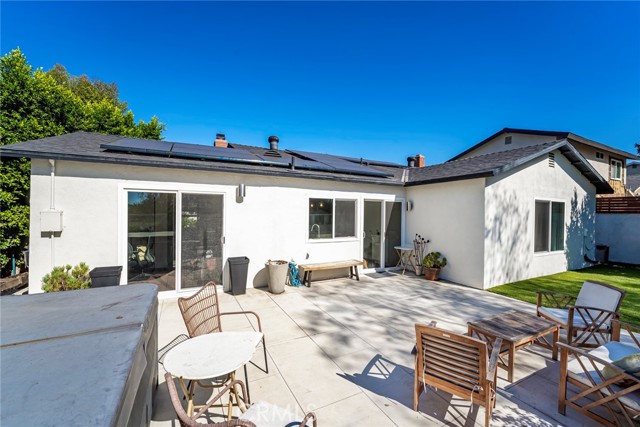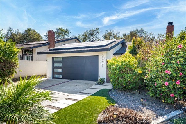 Stunning Single-Story Home with Open Floor Plan in Mission Viejo! This beautifully upgraded 3-bedroom, 2-bath home offers effortless single-level living with no steps. Enjoy striking curb appeal with mid-century modern garage doors and a gated entry. Inside, the open-concept kitchen features white cabinetry, quartz countertops, and stainless steel appliances—perfect for entertaining. The layout offers privacy with the primary and secondary bedrooms on one side, and a separate guest suite on the other. The backyard is a tranquil retreat with artificial turf, a hot tub, sunset views, and a versatile She-Shed for yoga, meditation, or play. Additional highlights include a newer roof and solar panels. A must-see property! This property include Lake Mission Viejo membership - Concerts, boating, paddleboarding, kayaking, playground, fishing and beach swimming.