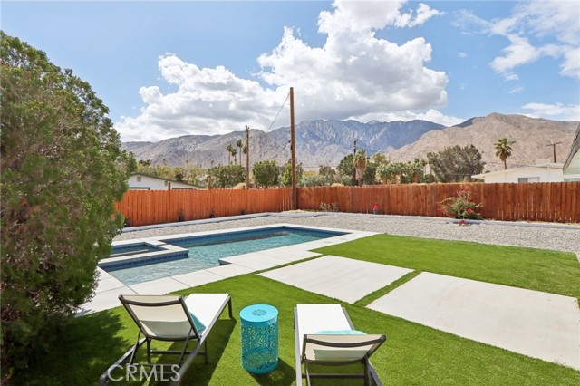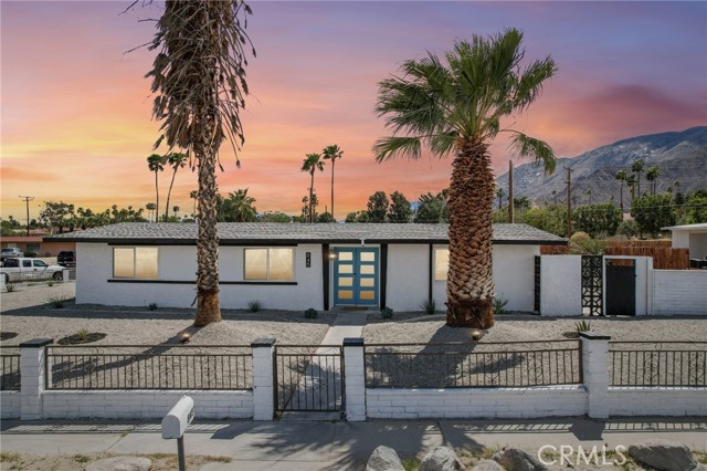 Just Reduced! Discover your dream desert oasis at 845 Gateway, ideally located just off Palm Canyon Drive. This beautifully renovated 4-bedroom, 2-bathroom Mid-Century Modern home sits on a spacious corner lot with breathtaking mountain views, offering the perfect blend of vintage charm and modern luxury. Every inch of this home has been thoughtfully renovated, reimagined for comfort, style, and functionality. Significant improvements include brand-new flooring throughout, all-new plumbing, and a fully updated kitchen and bathrooms. The kitchen features brand-new LG appliances. You will love entertaining in this open floor plan. Outside, your private resort-style yard features a brand-new Pebble Tec pool and spa, all controlled by your phone. The professionally landscaped grounds are enclosed by new fencing and a fully gated perimeter, creating a secluded haven perfect for lounging, entertaining, or enjoying starlit evenings. Large lot allows for a pickleball court or Casita. Located in the Gateway community, this property sits on fee simple land (you own it!), with no HOA and has eligibility for short-term vacation rental permits. Similar homes in the area generate over $100,000 annually from STR income, making this home not only a stunning personal retreat but a smart investment opportunity. Best of all, it's positioned outside of the flight path and just minutes from downtown Palm Springs, the Aerial Tramway, golf, hiking, restaurants, and shopping. Whether you're looking for a full-time residence, a weekend getaway, or a high-performing vacation rental, this turnkey Mid-Century gem offers everything you need—and more. Don’t miss your chance to own this iconic piece of Palm Springs with modern upgrades, mountain views, and unmatched rental potential. This home qualifies for no and low down home buyers assistance programs. Ask for details!