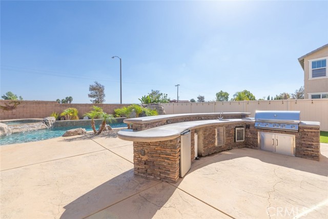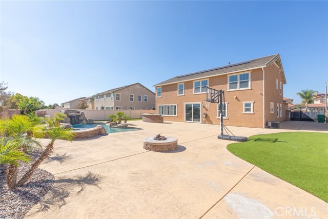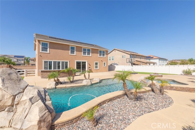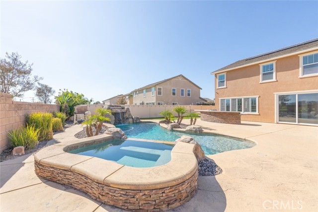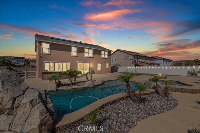 This home truly has it all — yes, five bedrooms! A versatile main-floor bedroom with an adjacent full bath makes the ideal space for guests or multi-generational living. Just off the garage, you’ll also find a flexible bonus space — perfect for a home gym, office, or hobby room. Upstairs, a spacious loft provides even more room for work or play. The open-concept design connects the living, dining, and kitchen areas seamlessly, while two large entertainment spaces, including one that opens to the backyard, make this home perfect for gatherings. Step outside to your own resort-inspired retreat. The expansive backyard features a sparkling pool and spa with ambient lighting, a built-in bar and BBQ, a cozy firepit, and gently sloping hillsides with space for gardening and landscaping. The property also includes RV parking — a rare and valuable feature. The inviting kitchen is both stylish and functional, with sleek stainless steel appliances and plenty of space to prepare everything from everyday meals to holiday feasts. Upstairs, the master suite is a true sanctuary, offering an oversized bedroom, dual sinks, a soaking tub, elegant vanity area, and spa-like bath. Gorgeous floors add timeless sophistication from the stairs and upstairs, while large windows bathe the home in natural light. Nestled in a prestigious and private pocket of Murrieta, this property offers the perfect blend of comfort, elegance, and convenience — just minutes from top-rated schools, shopping, and dining. The kitchen is both stylish and functional, with sleek stainless steel appliances and plenty of space to prepare everything from weeknight dinners to holiday feasts. Upstairs, the master suite is a true sanctuary, offering a spa-like bath with dual sinks, an elegant vanity, soaking tub, and a generously sized bedroom retreat. Conveniently located in a prestigious and private pocket of Murrieta, you’ll enjoy close proximity to top-rated schools, shopping, and all the amenities the city has to offer.