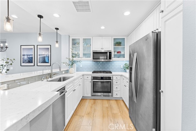 Welcome to this turn key former model home in the desirable Ashton Green neighborhood of Turtle Ridge, Irvine. This Plan 6 corner residence offers abundant natural light and timeless upgrades throughout, including wide plank wood flooring, crown moulding, wainscoting, custom built-ins, and a beautifully renovated kitchen. The open layout features a spacious family and dining room, a tech center with built-in desk, and a private patio off the living room that extends the living space outdoors. You’ll find two generously sized bedrooms with upgraded bathrooms, along with a convenient laundry area. Additional highlights include a full two-car garage, tasteful designer finishes, and versatile spaces that make the home ideal for both everyday living and entertaining. Perfectly situated within walking distance to award-winning Irvine schools, with easy access to nearby parks, University High School, the Toll Roads, and world-class shopping and dining, this home blends comfort, style, and convenience in one of Irvine’s most sought-after communities.