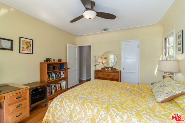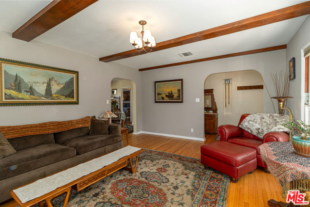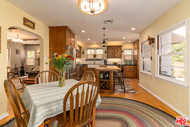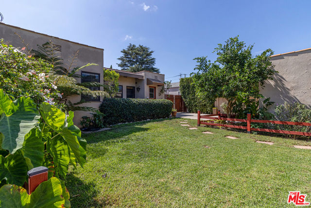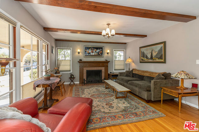 Experience true architectural romance in this beautifully preserved 1940 Spanish-style single family home in Reynier Village, the Beverlywood-adjacent enclave prized for its central West Los Angeles address. Step inside to an inviting living room awash in natural light, highlighted by classic dark wood beamed ceilings, original wood floors, and a handsome wood-burning fireplace that promises both warmth and charm. The signature archway opens to an expansive eat-in island kitchen featuring custom wood cabinetry, rich soapstone countertops, a porcelain farmhouse sink, and sleek stainless steel appliances perfect for the home chef and entertainer alike. Your culinary creations are complemented by a sunny rear deck shaded for year-round alfresco dining and relaxation over-looking a lush, private backyard and vegetable garden, delivering an effortless indoor-outdoor lifestyle. Discover a sophisticated hall bath showcasing double sinks, natural stone counters, and seamless glass shower wrapped in travertine tile flooring for a luxurious touch. Both spacious bedrooms provide restful retreats with efficient central air and heating for comfort in any season. The detached garage provides endless possibilities; imagine your dream ADU, dedicated home office, dynamic yoga and/or pilates studio, or creative workspace. The prime location gives immediate access to downtown Culver City, Beverly Hills, and Century City, plus the Expo line and 10 freeway options for quick beach excursions or downtown adventures, whether it's concerts, sports, or theatre. Timeless character, thoughtful updates, and an unbeatable location make this Spanish gem the kind of opportunity buyers dream about and one that's destined to be the heart of unforgettable Westside living.