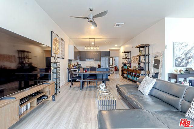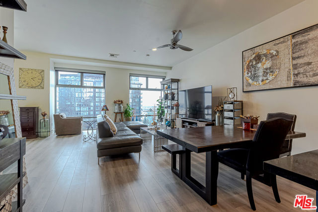 Introducing unit 2208, where you can meet the sky with the view. This modern condominium offers panoramic views that has sunrise to vibrant cityscape with full of natural light. This unit has open-concept floor plan and installed with luxury window shades. Newly renovated kitchen is an extra enjoyment for the home chef, and all the appliances are newly equipped. The breakfast bar is another bonus if needed. In-unit laundry is convenient, and this unit comes with 2 spacious parking spaces. Skyloft is located in the heart of DTLA. Just steps away from well-known dining's, shopping, Whole Foods, the Crypto.com Arena, the LA Convention Center, and walkable distance.